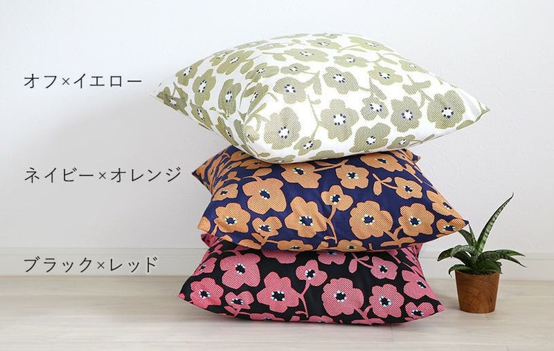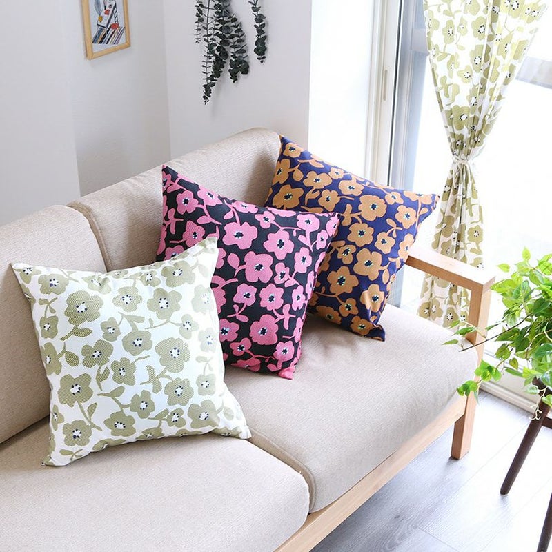 ゆるいカタチのPOPなフラワー柄にほっこりするクッションカバー