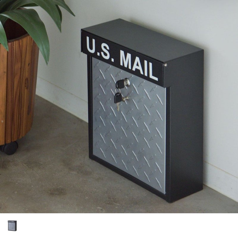 チェッカープレートの武骨な表情と「U.S. MAIL」のロゴが、玄関にインダストリアルな雰囲気を運びます。