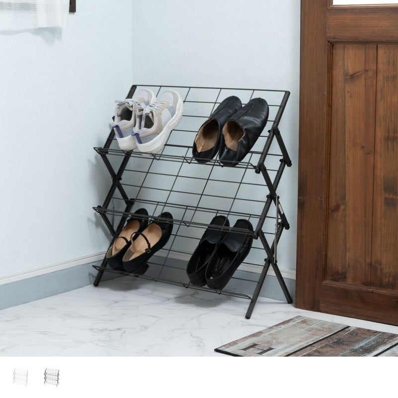 折りたたみ可能で使わない時はコンパクトに収納できるシューズラックです。