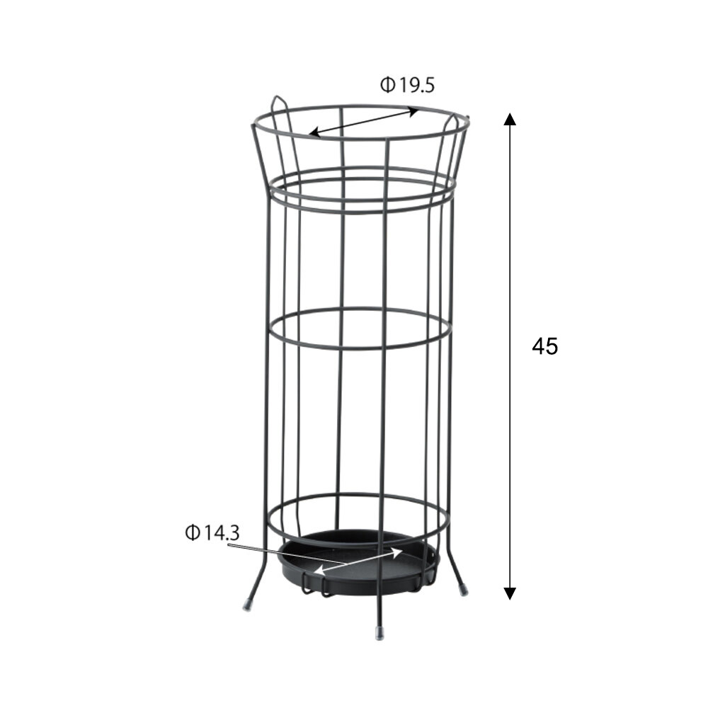 まるでワイヤーバスケットのように軽やかでお洒落な傘立てです。
