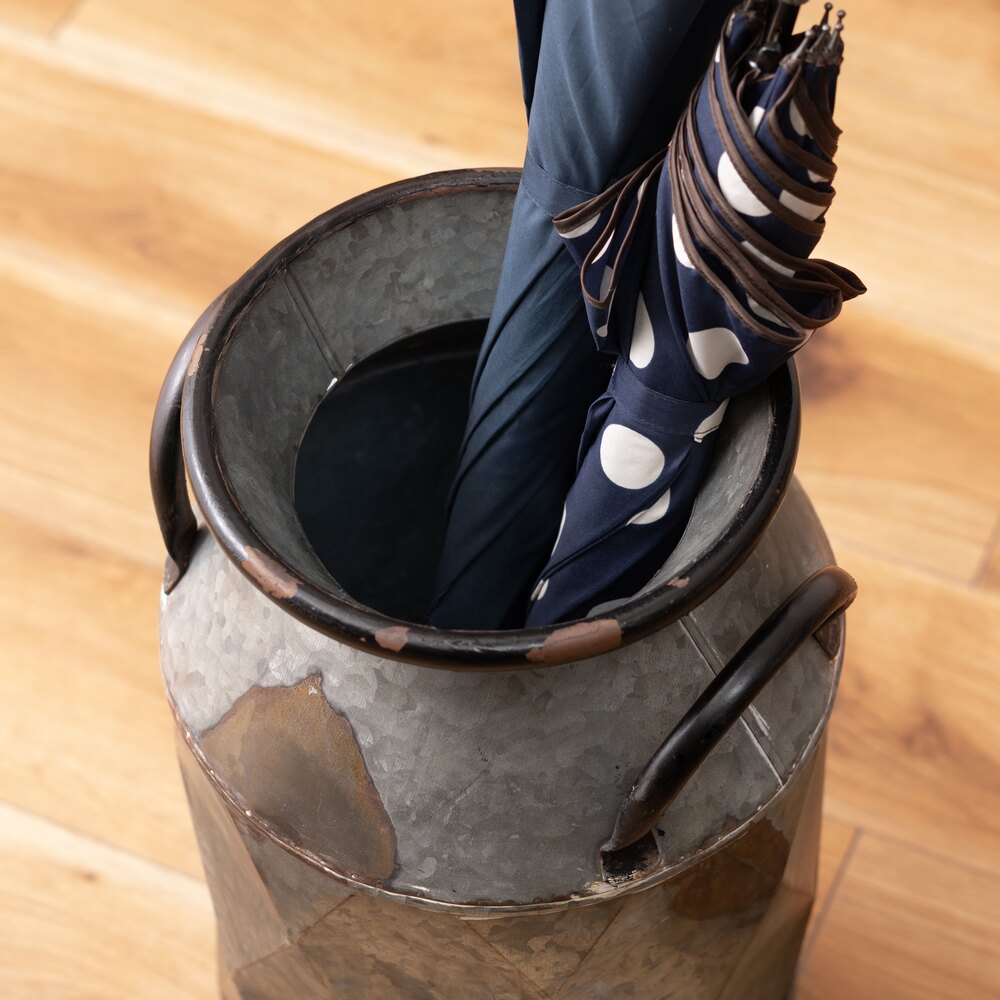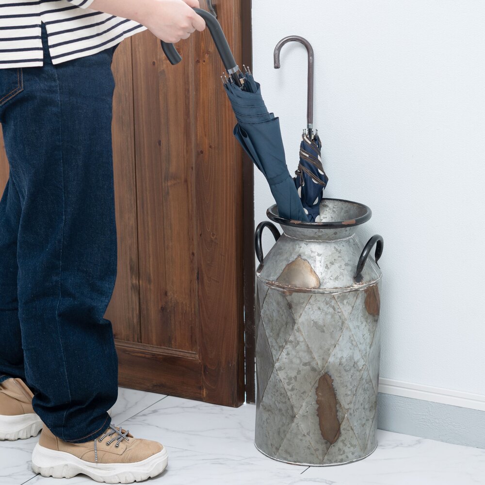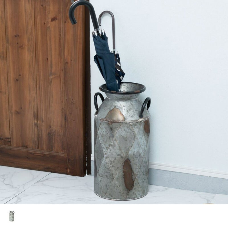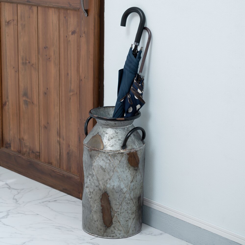 ブリキのミルクポットを思わせるやさしいフォルムの傘立て。