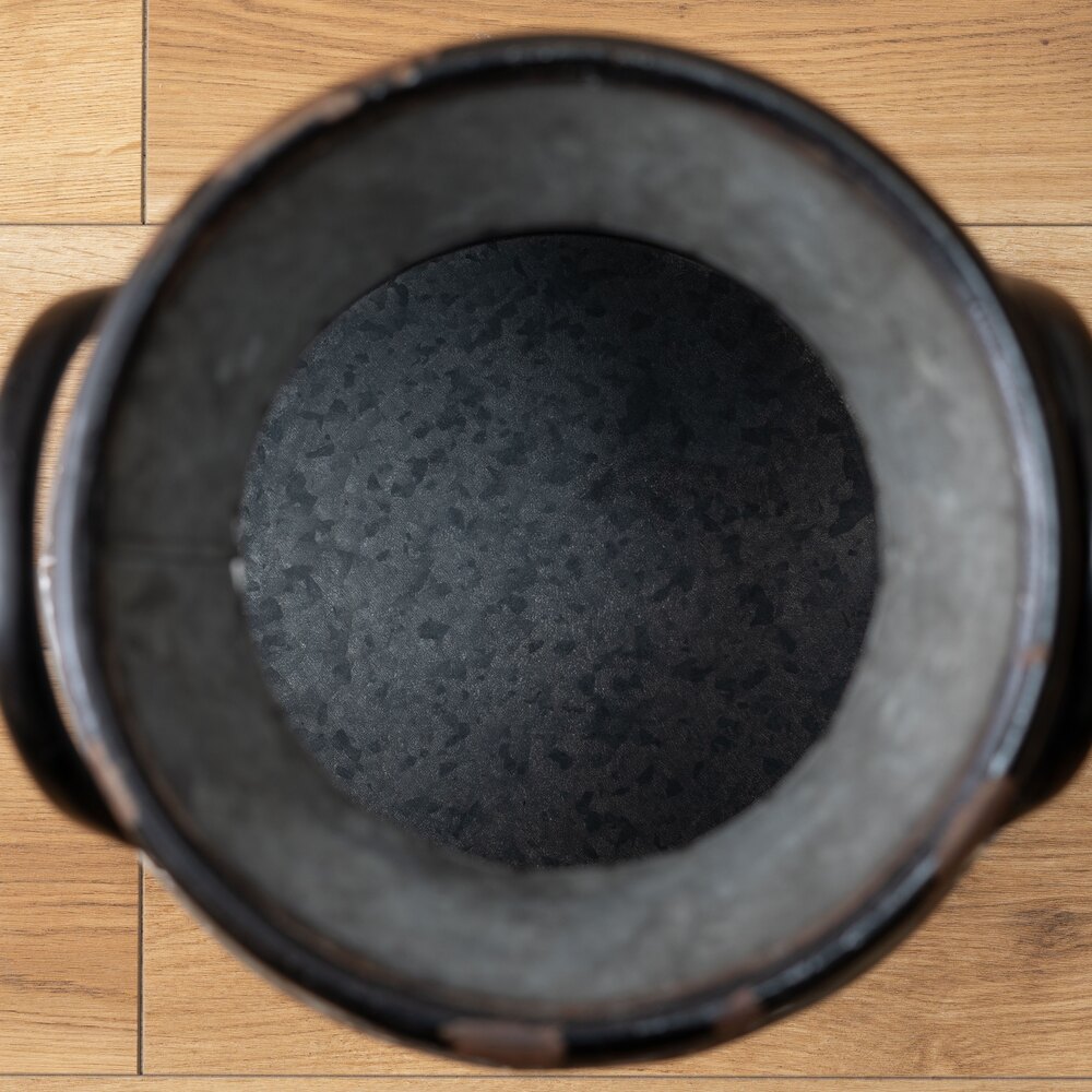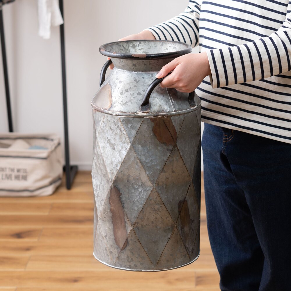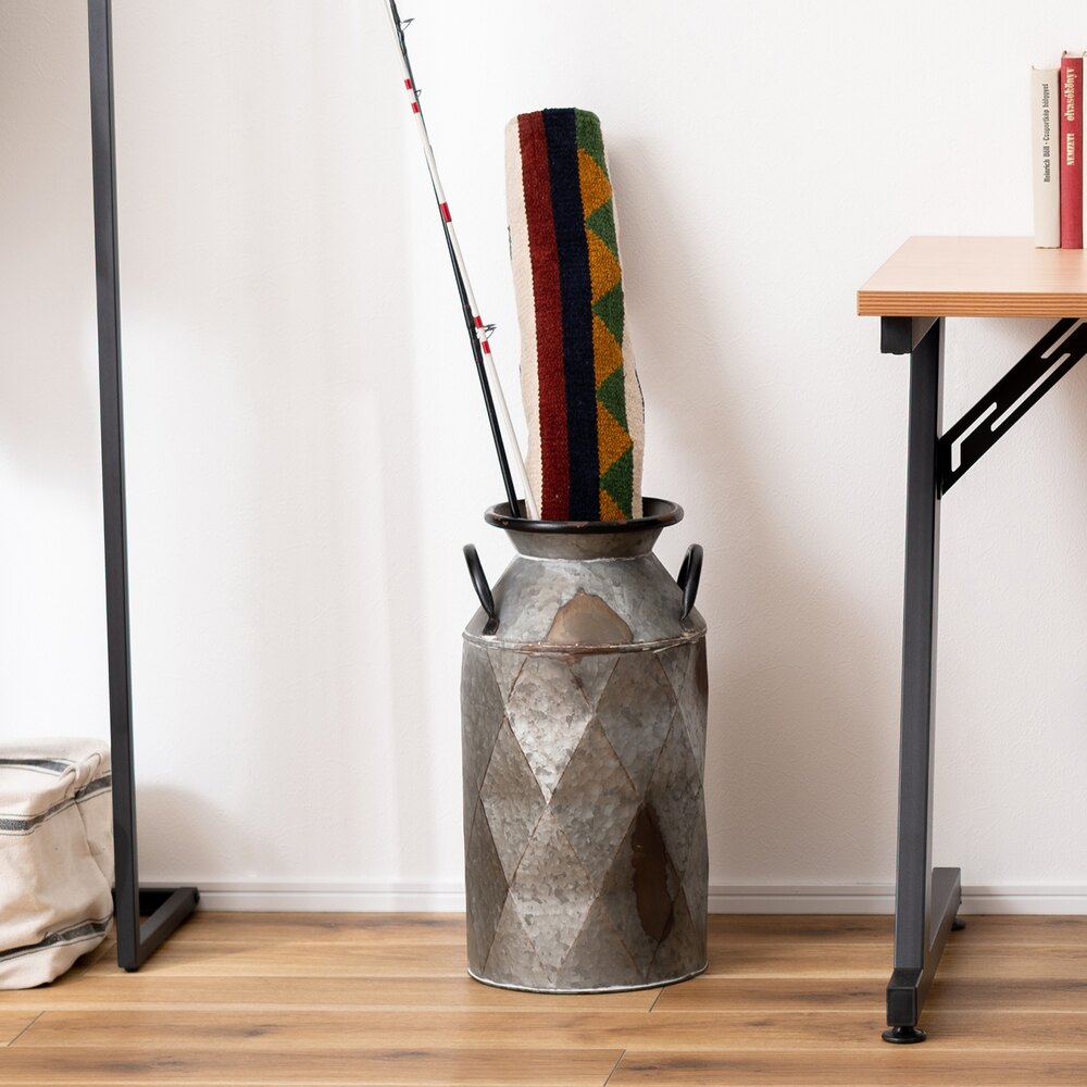 ブリキのミルクポットを思わせるやさしいフォルムの傘立て。