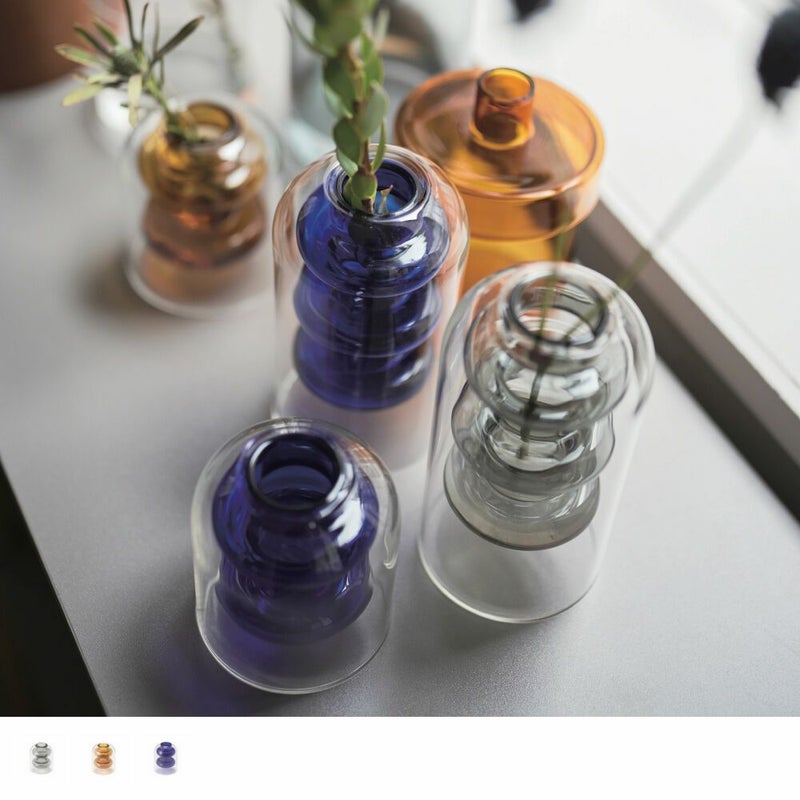 透明感あふれるカラーリングが、光を受けるたびに繊細な表情を見せる一輪挿しガラスベースです。