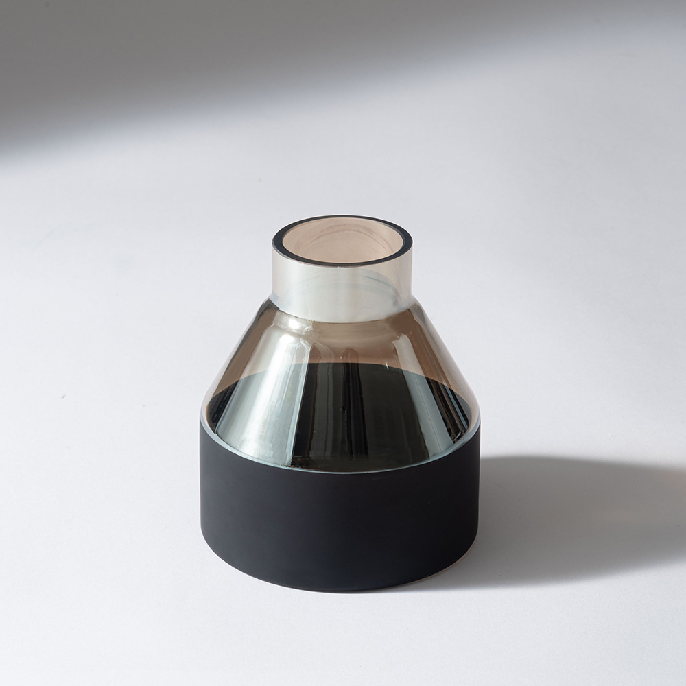 フロストとクリア、質感の異なるバイカラーで仕上げたモダンなガラスベースです。