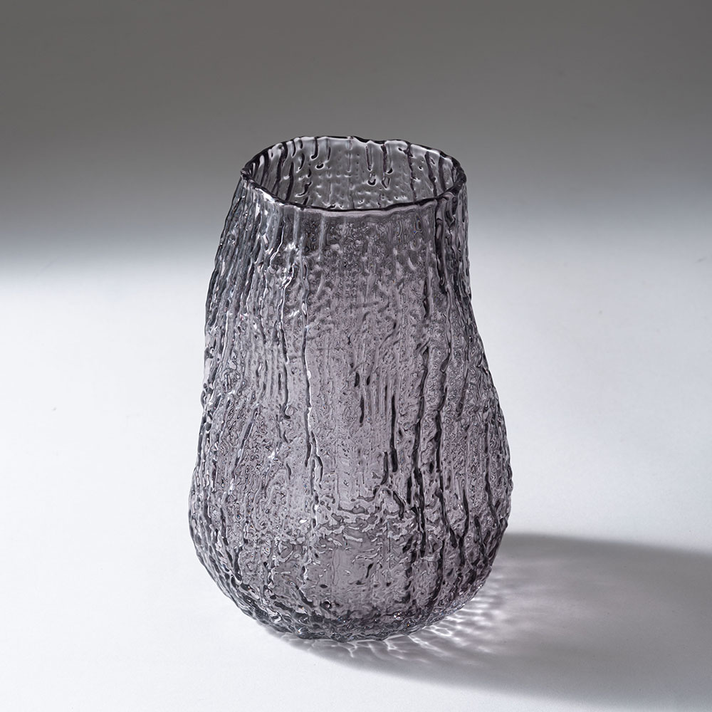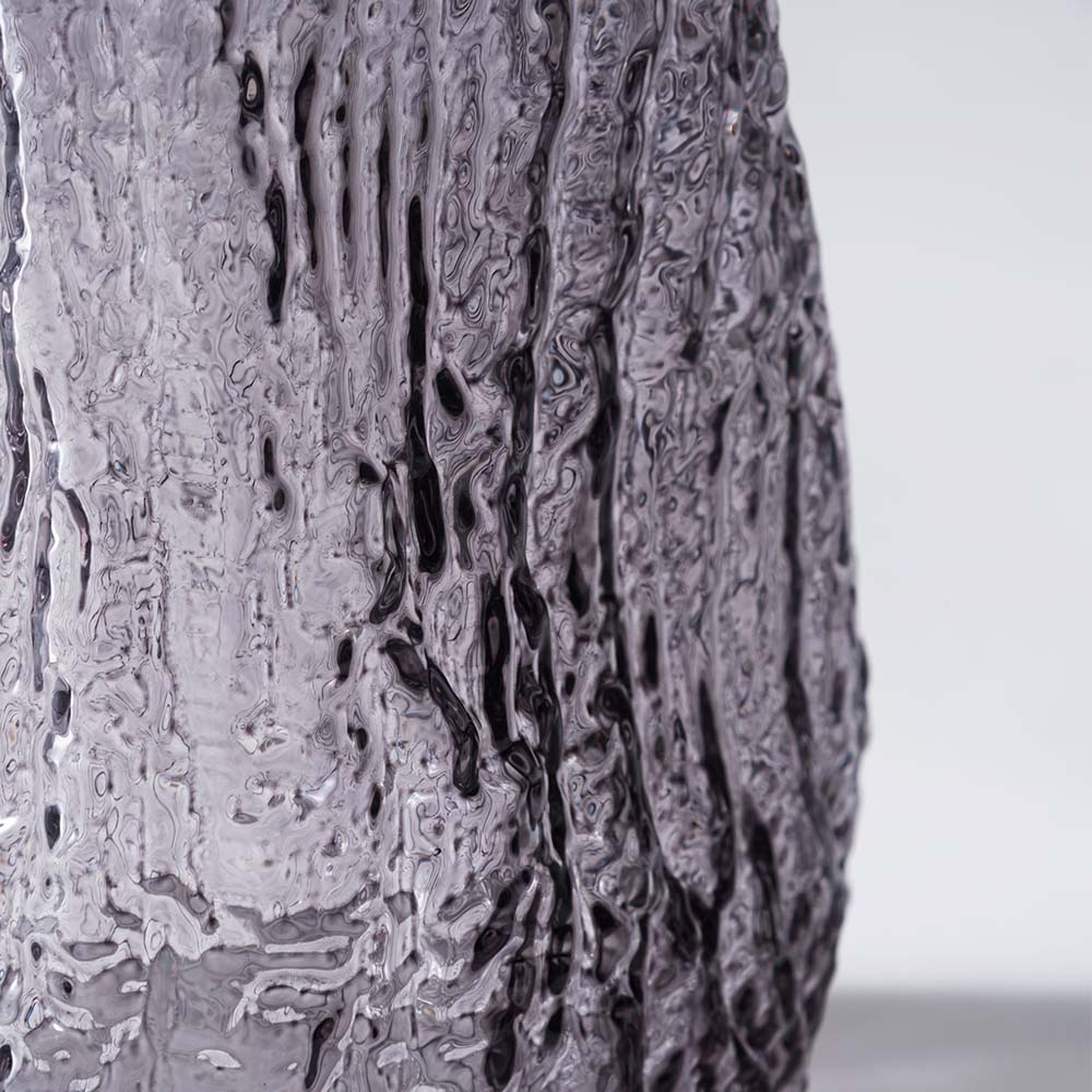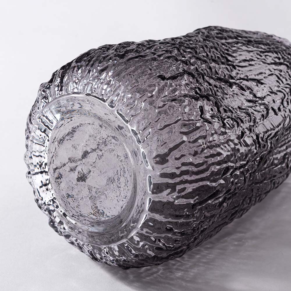 まるで樹皮を写し取ったかのような、有機的なテクスチャーが美しいガラスベースです。
