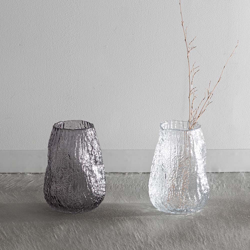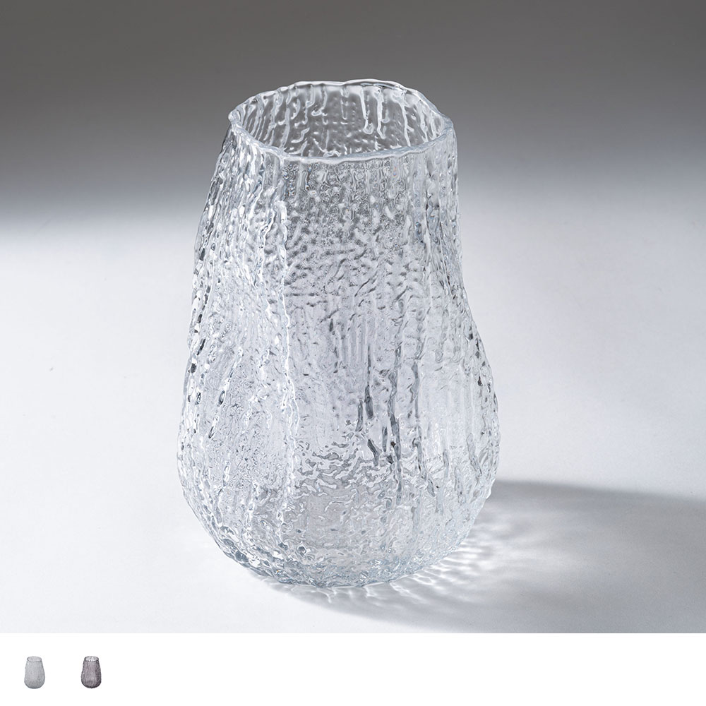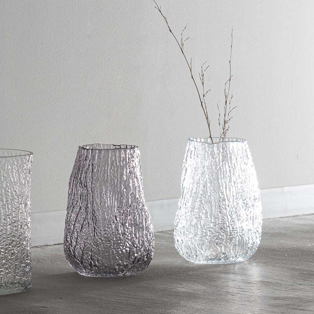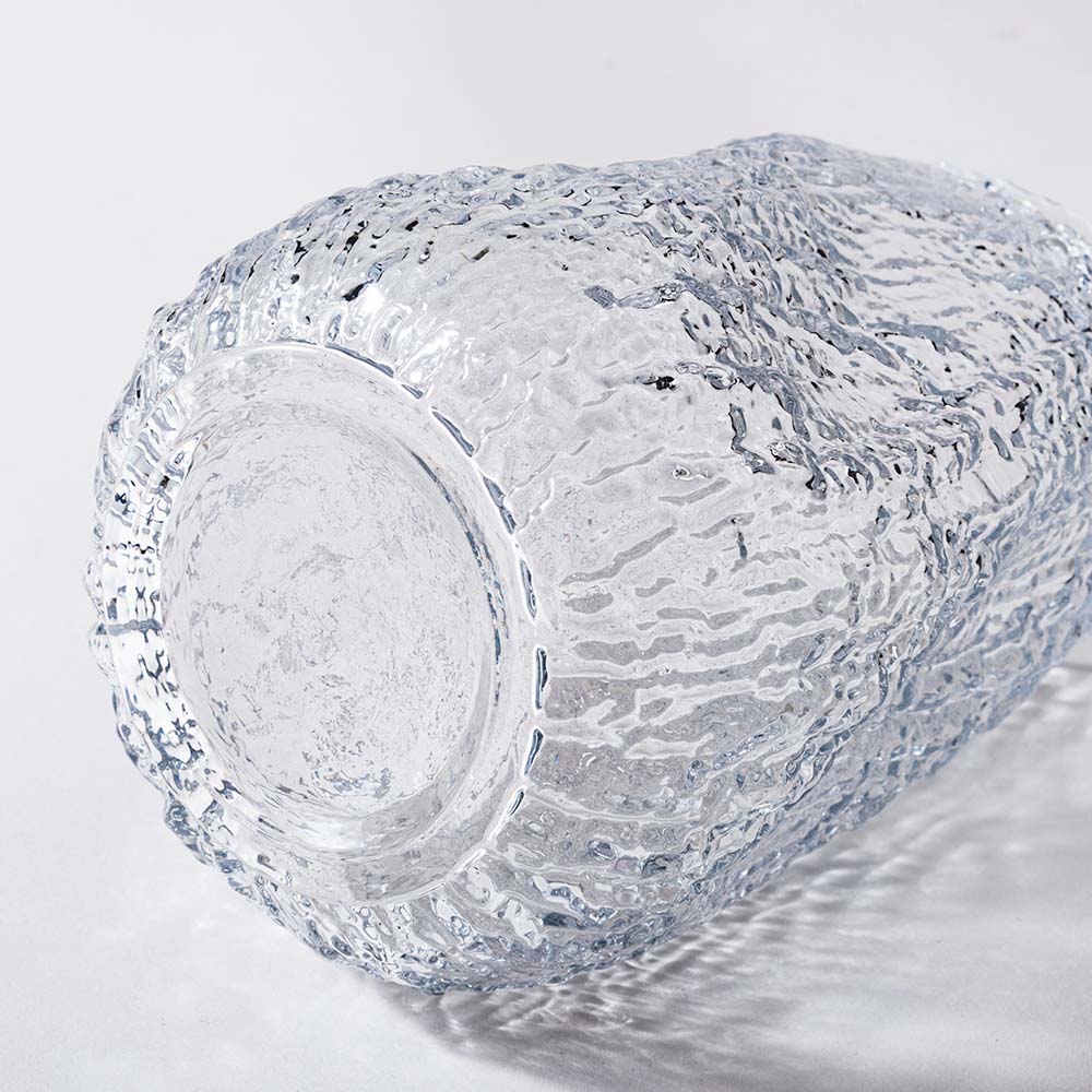 まるで樹皮を写し取ったかのような、有機的なテクスチャーが美しいガラスベースです。