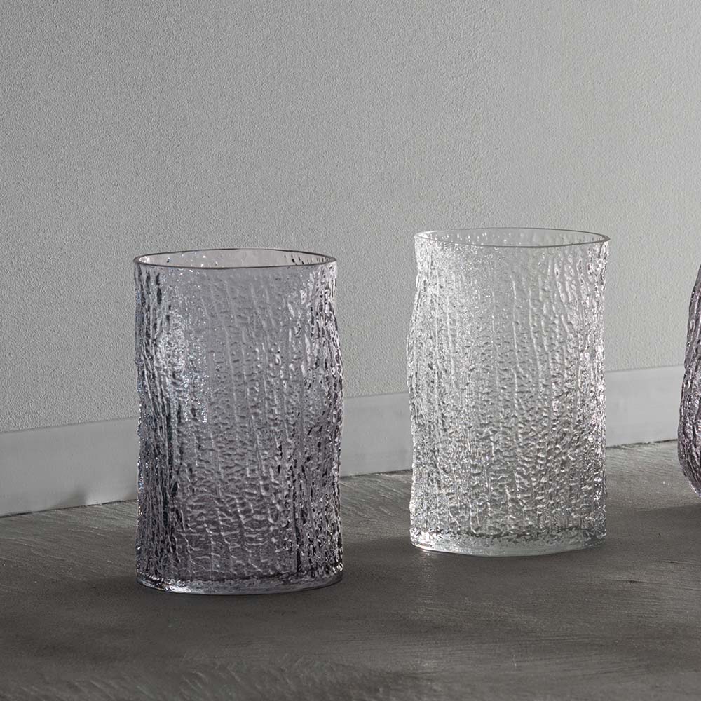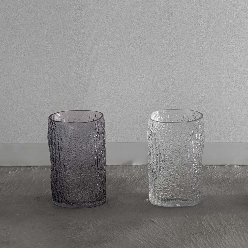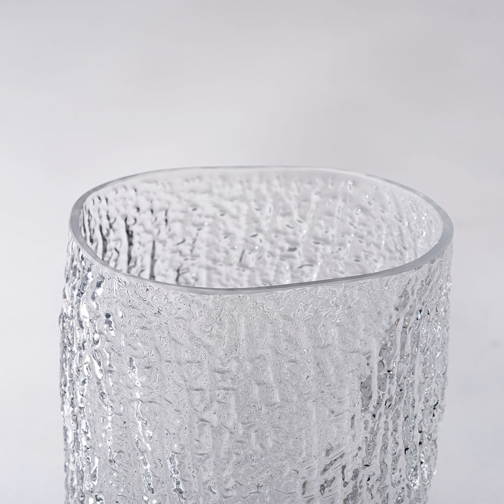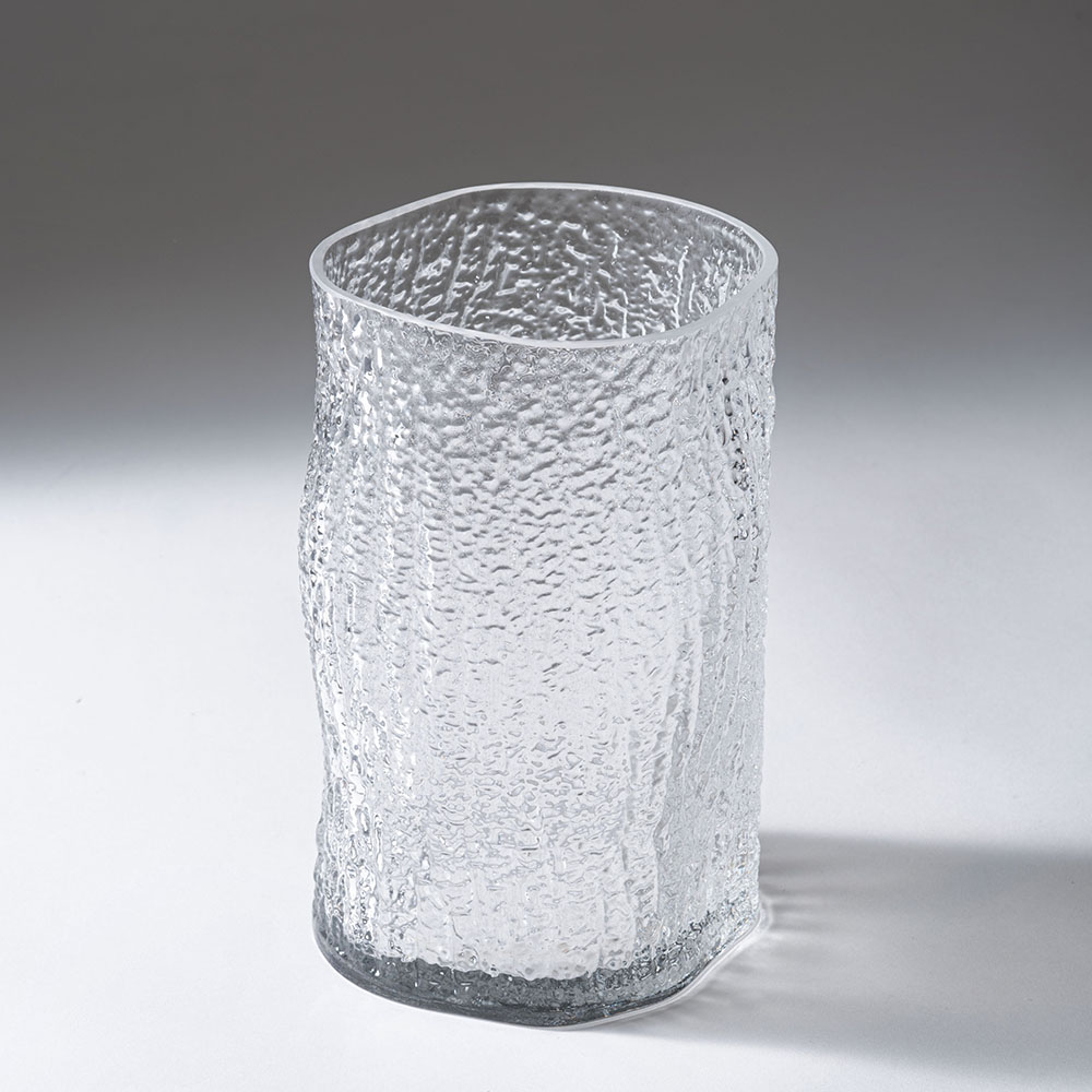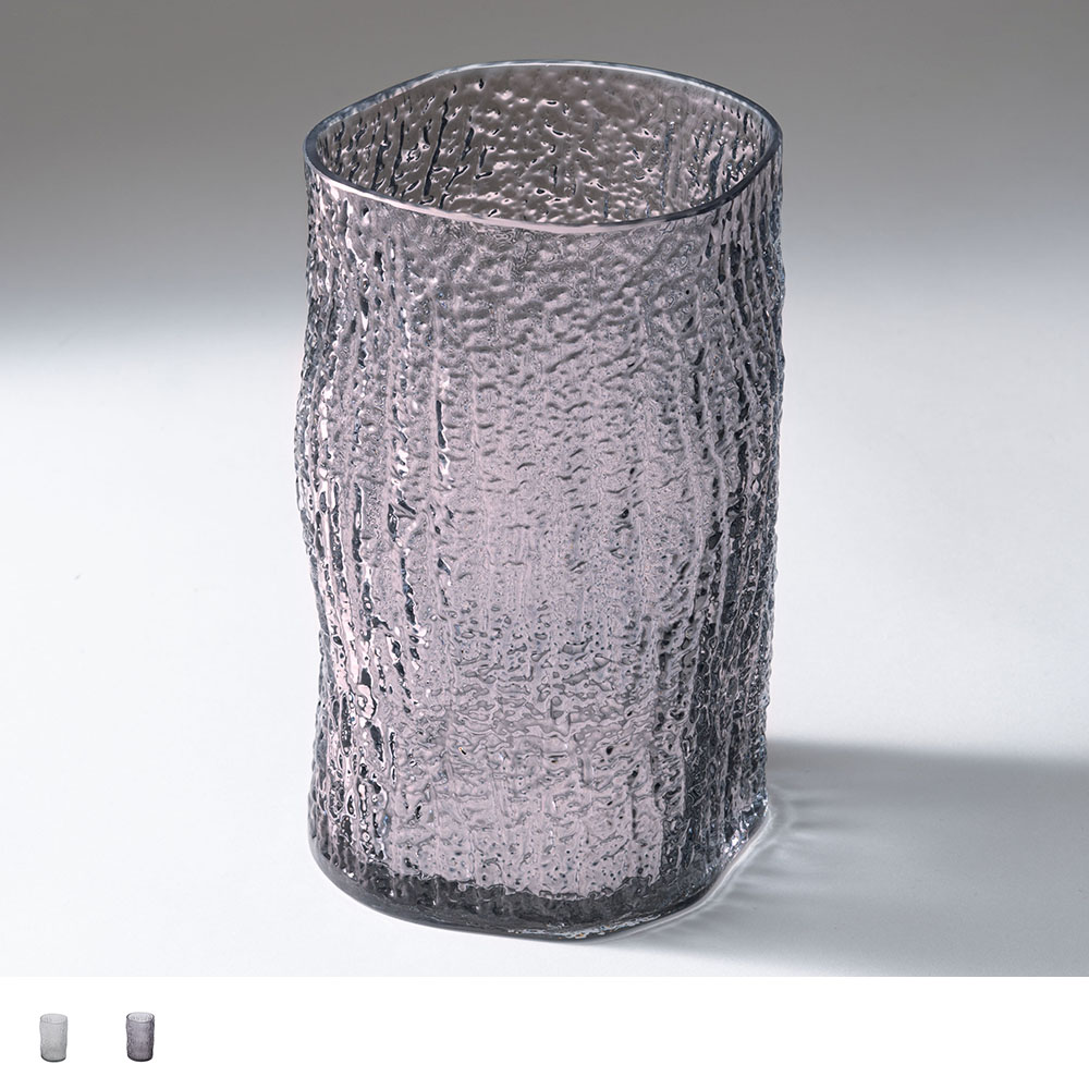 まるで樹皮を写し取ったかのような、有機的なテクスチャーが美しいガラスベースです。