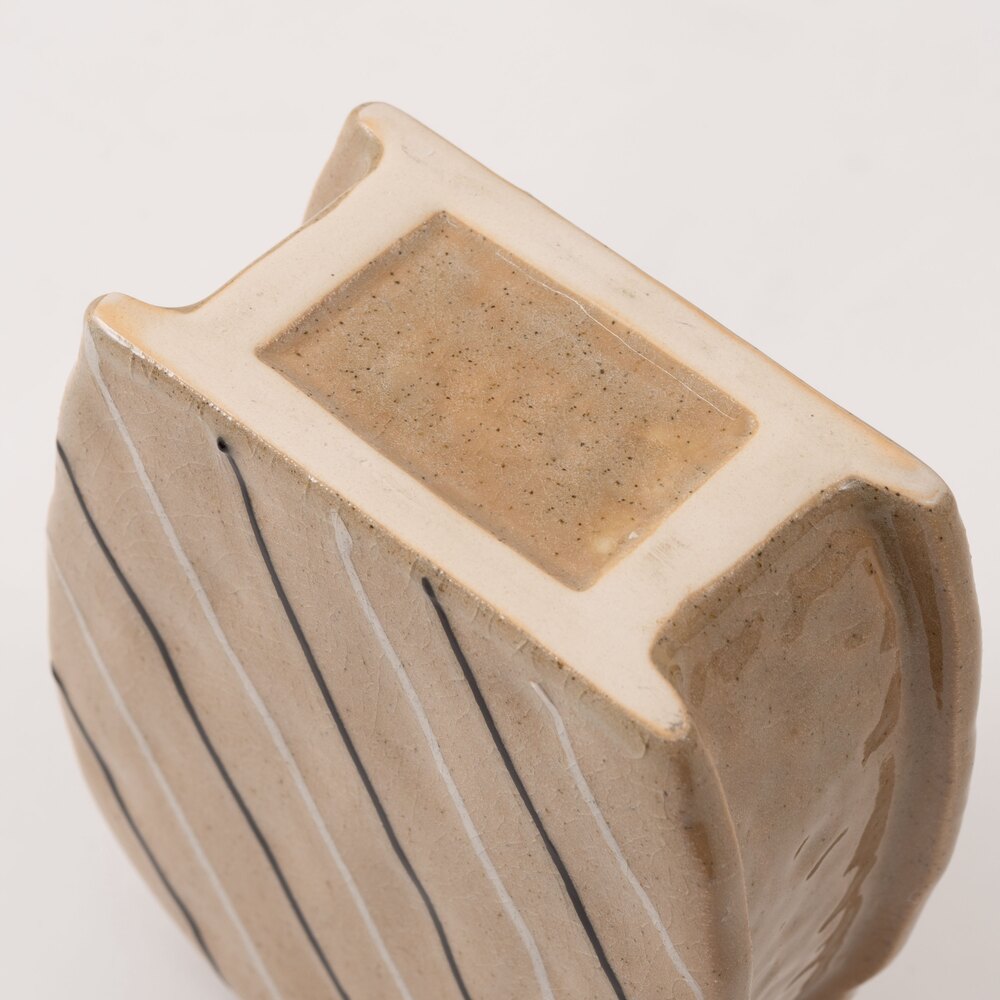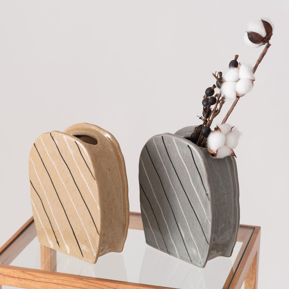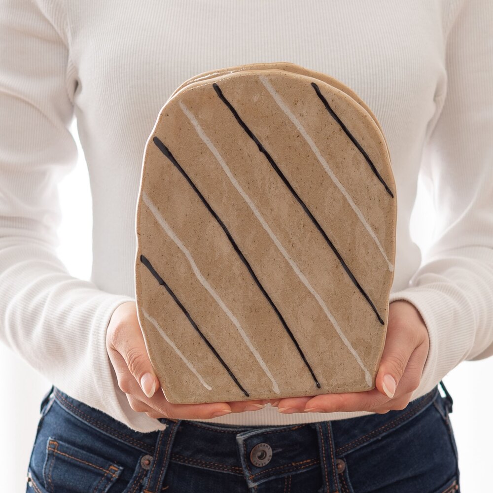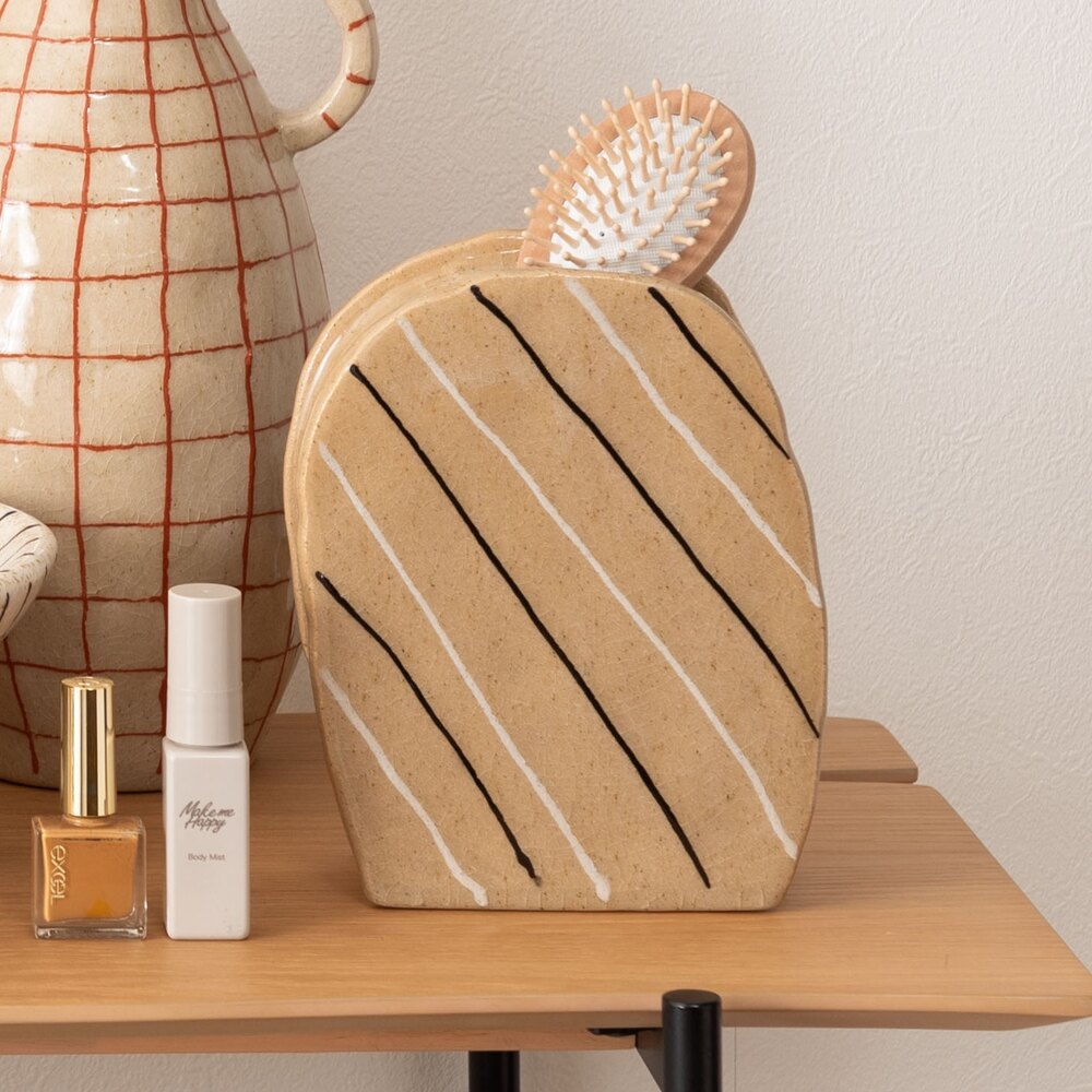 平たいユニークなフォルムには、手書きのような温かみのあるストライプをあしらいました。