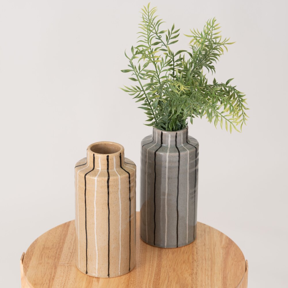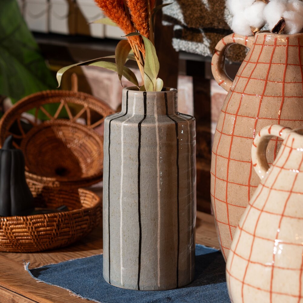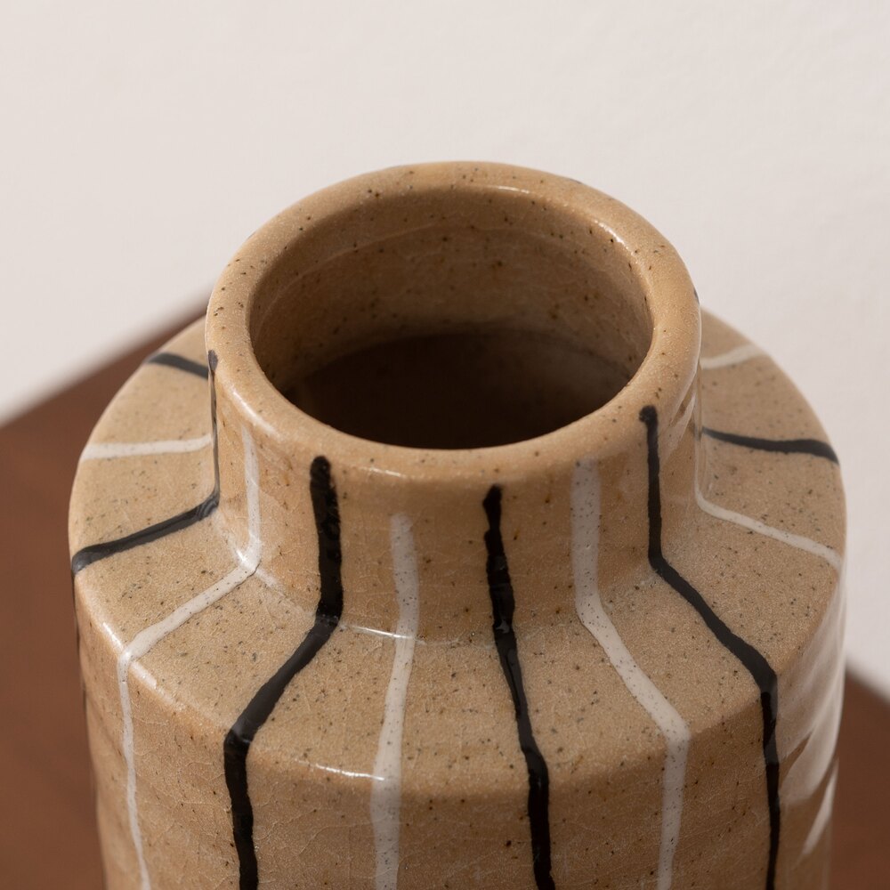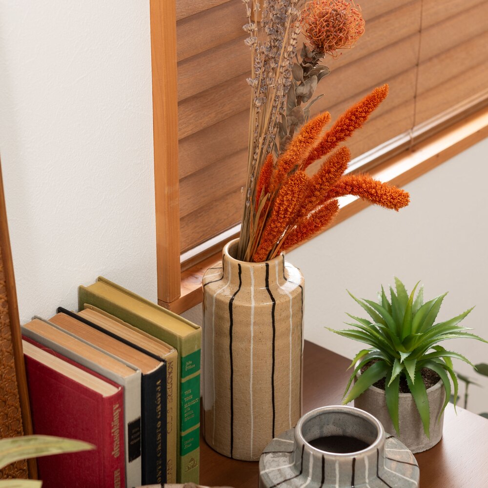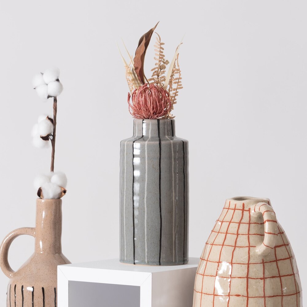 手書きのような温かみのあるストライプが、空間に優しいリズムを生み出すフラワーベースです。