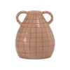 手書きのようなチェック柄と、ころんとした壺のようなフォルムが愛らしいフラワーベース。