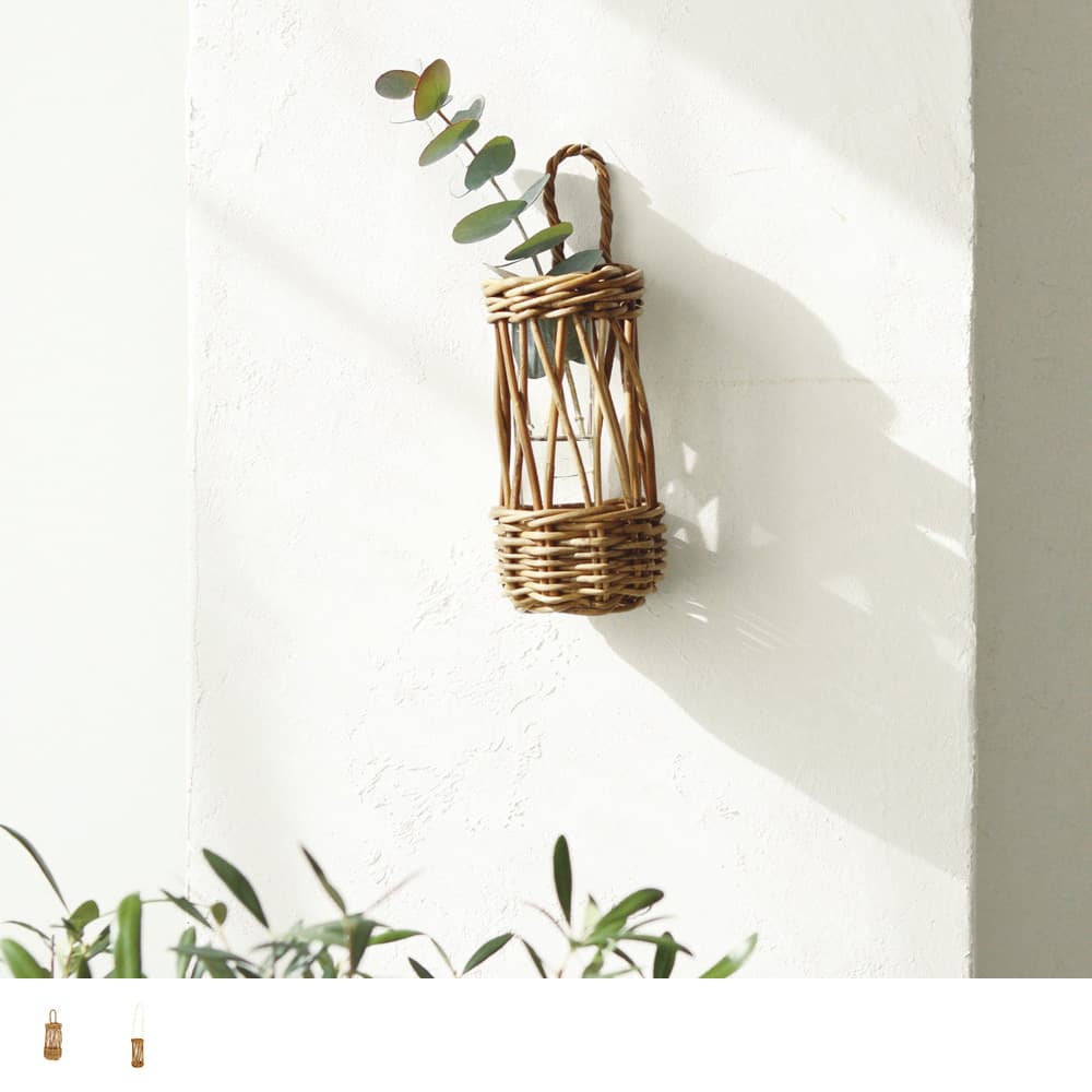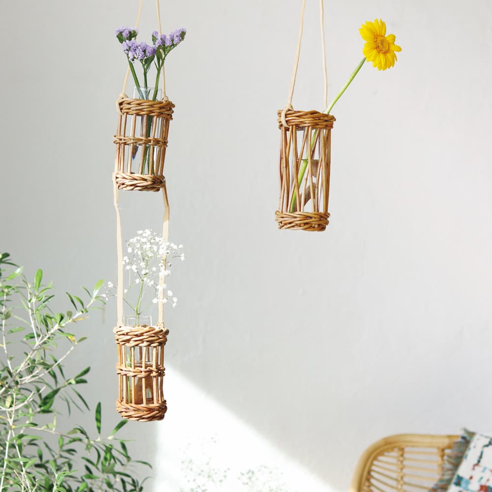 風合い豊かなラタン素材のハンギングフラワーベース。