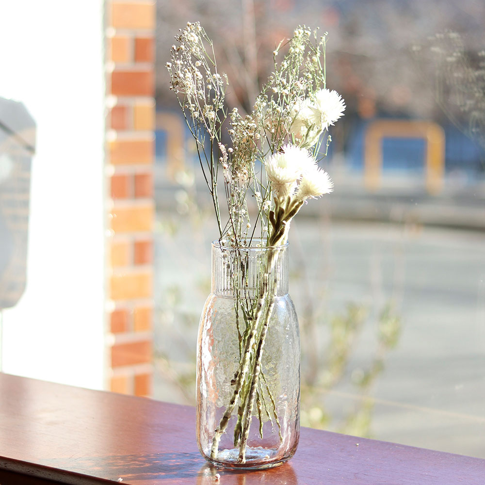 一輪挿しにしたり、小さなブーケを飾ったり。ドライフラワーを飾るのも素敵です。