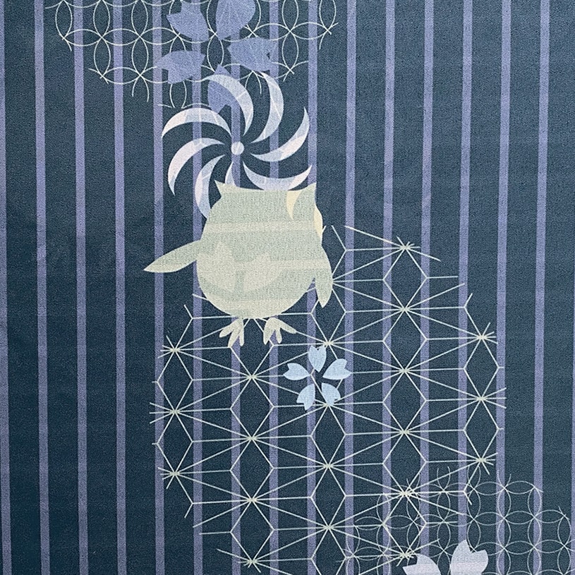 深みのあるダークブルーのカラーと、不思議な夜に吸い込まれて行きそうなフクロウが描かれたデザイン。 「不苦労」が一家でお家にやってくる縁起のいいデザイン♪