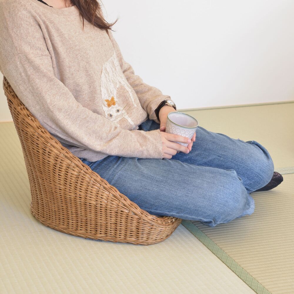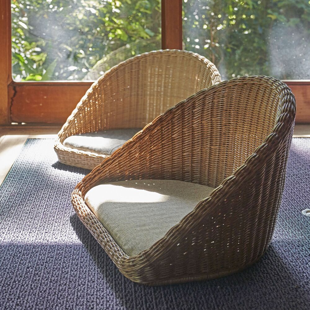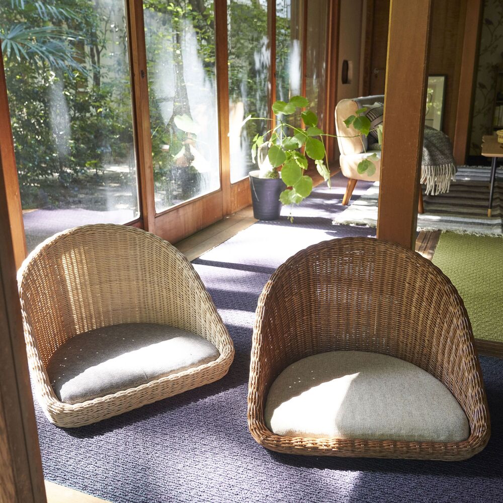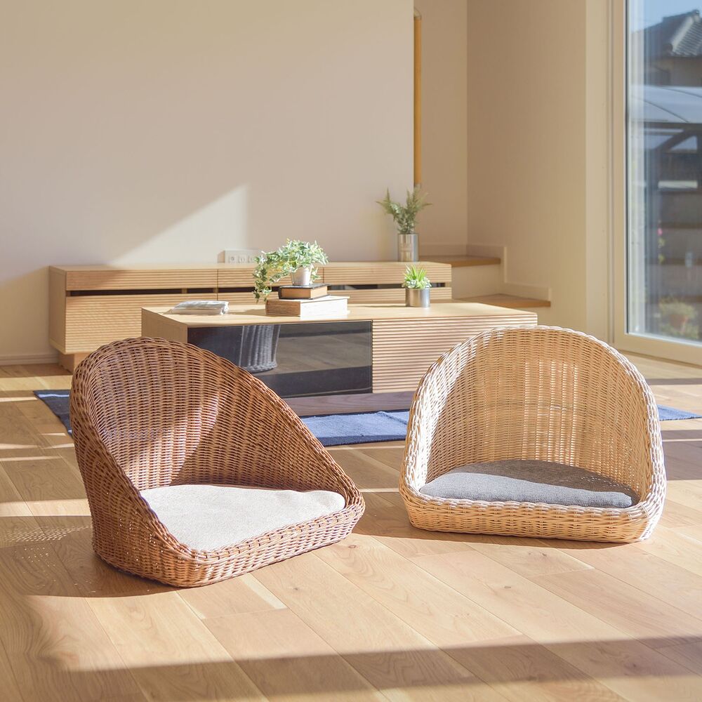 丁寧に編み込まれたラタンが、リゾートのような開放感とぬくもりを演出するフロアチェア。