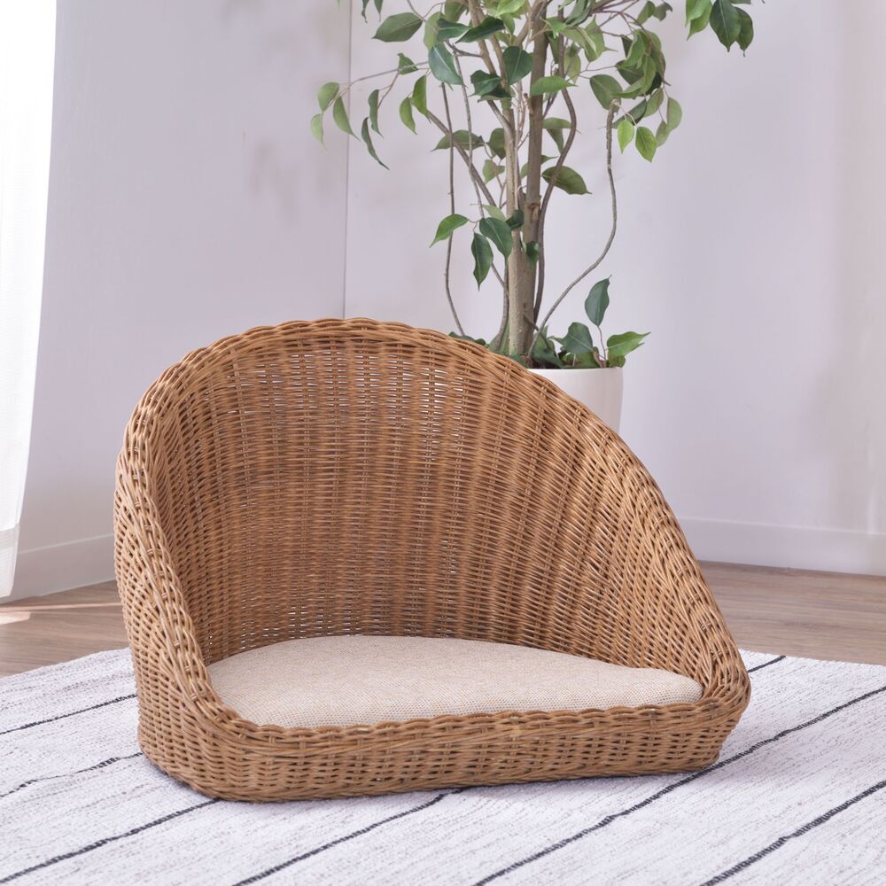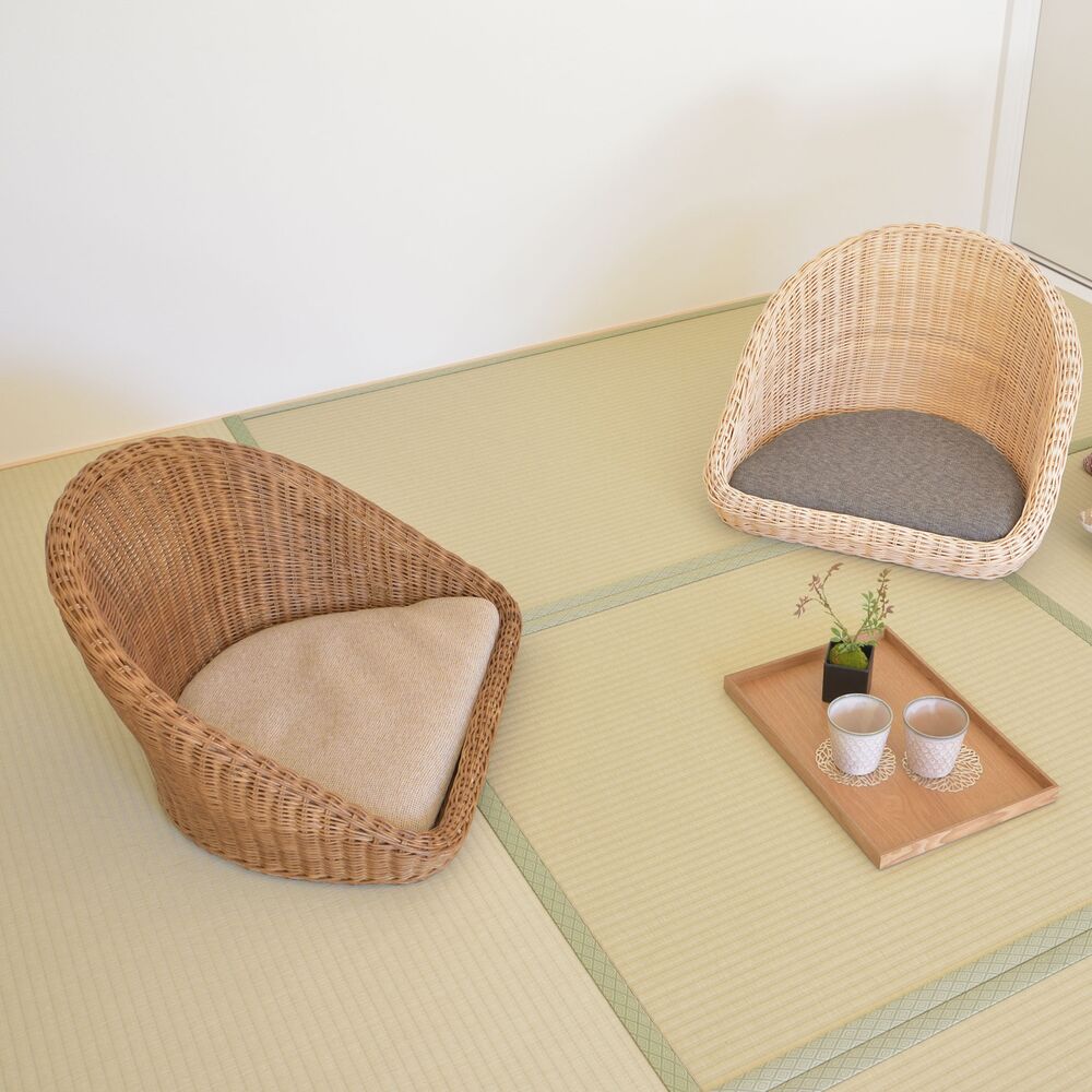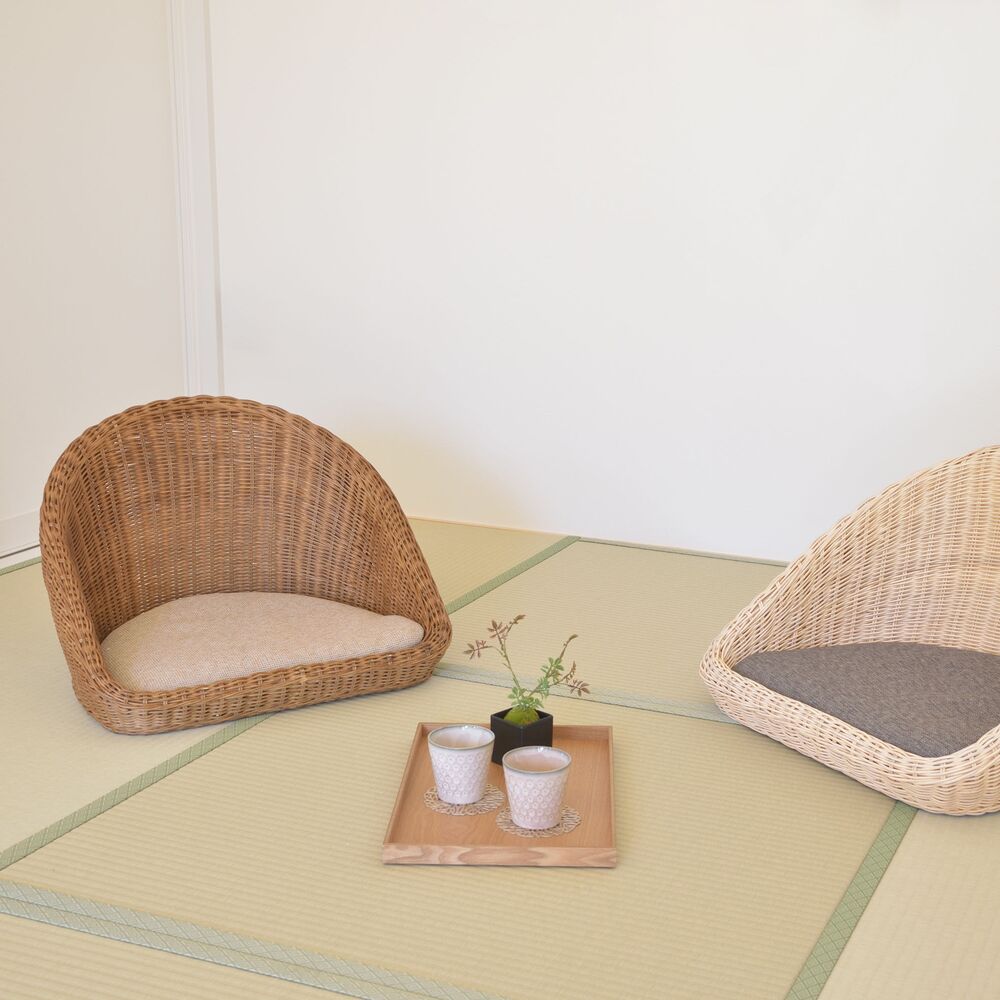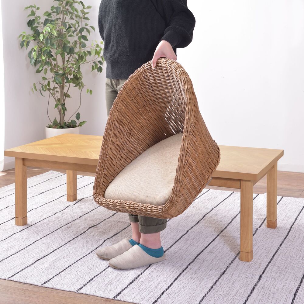 丁寧に編み込まれたラタンが、リゾートのような開放感とぬくもりを演出するフロアチェア。