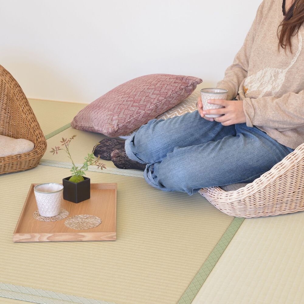調湿効果が梅雨のじめじめ感を解消し、さらっとした肌触りが暑いお部屋の対策にも活躍するい草ラグ。