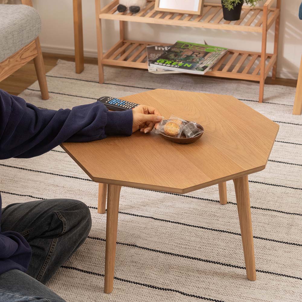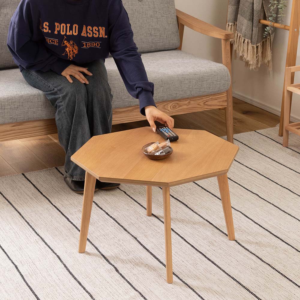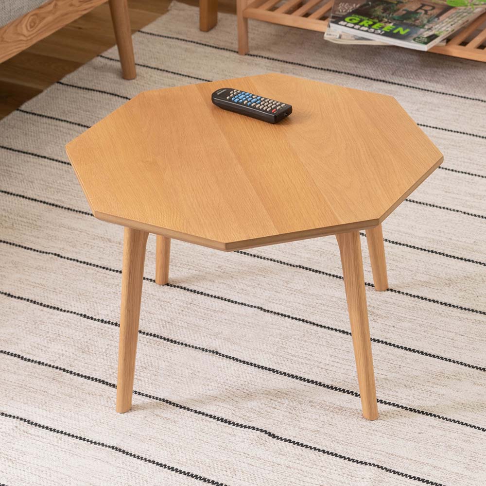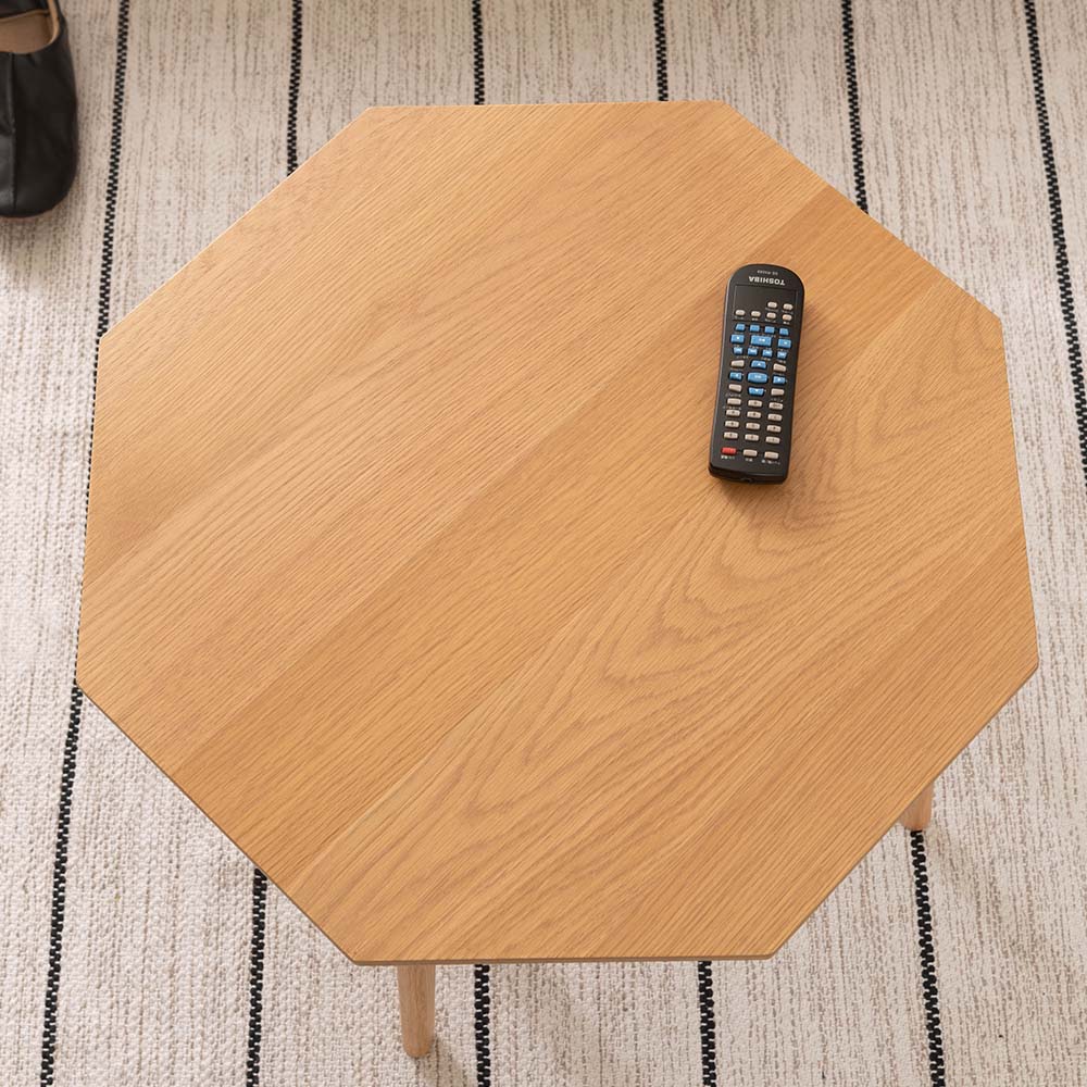 ホワイトオークの美しい木目が映える、八角形のローテーブル。