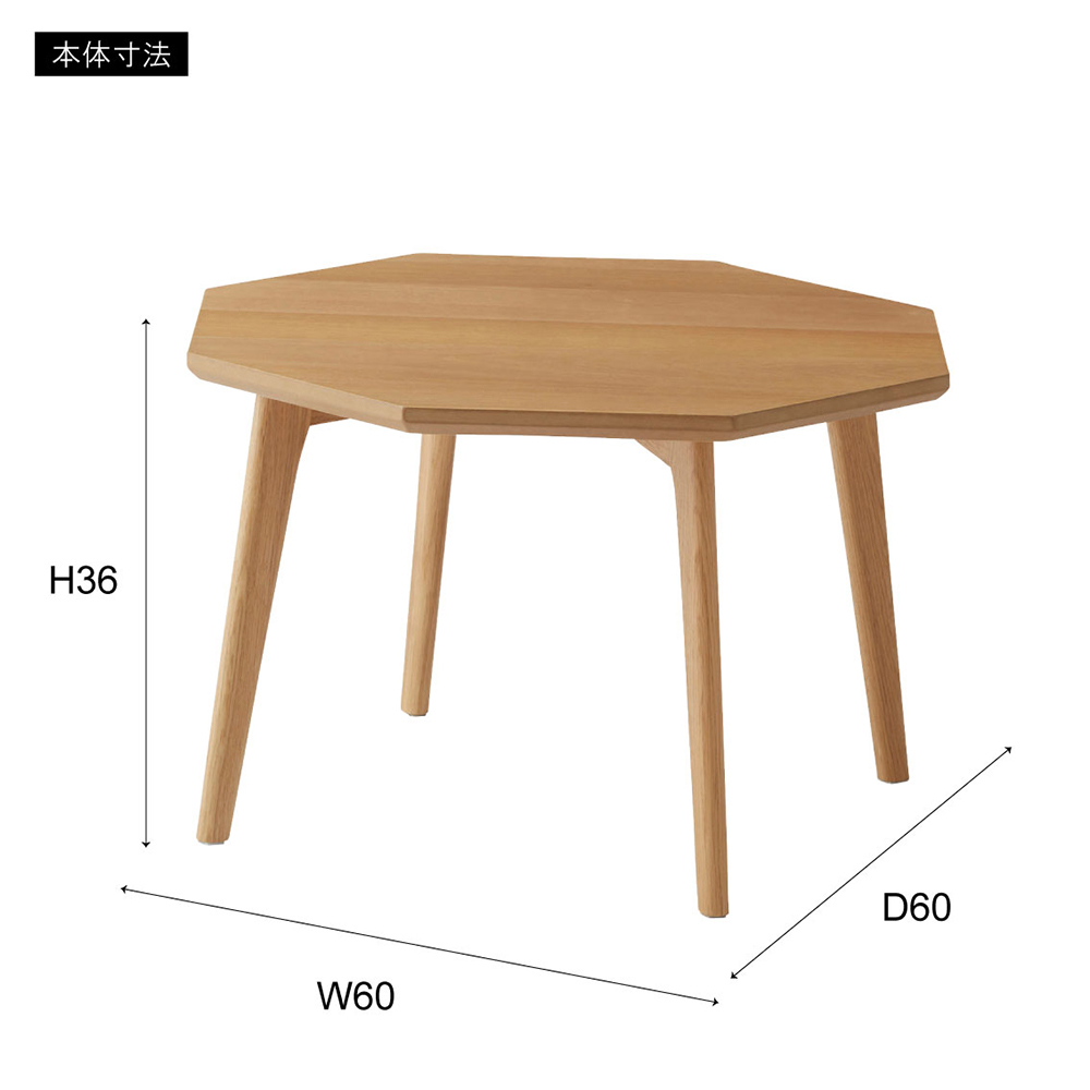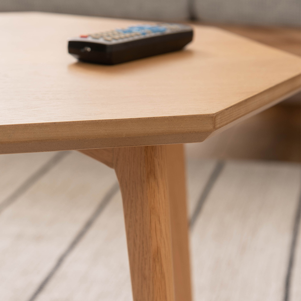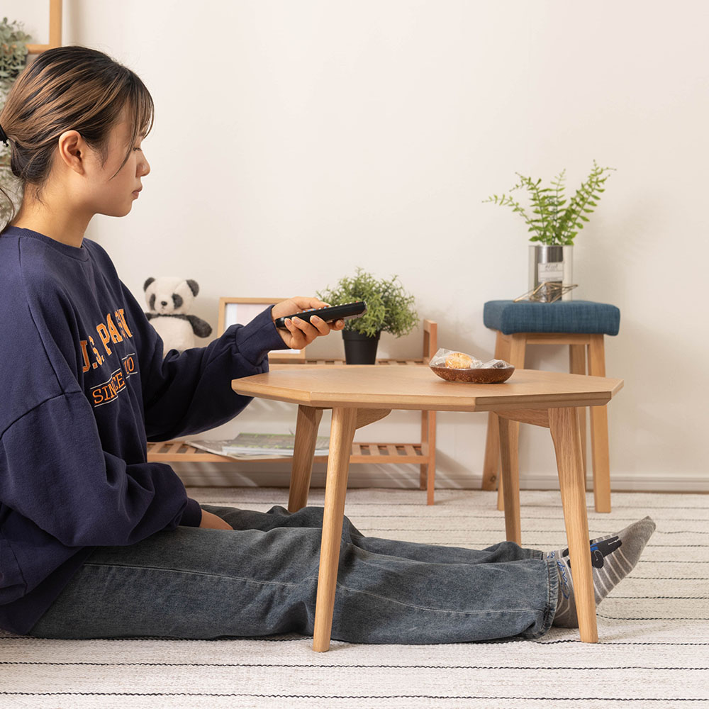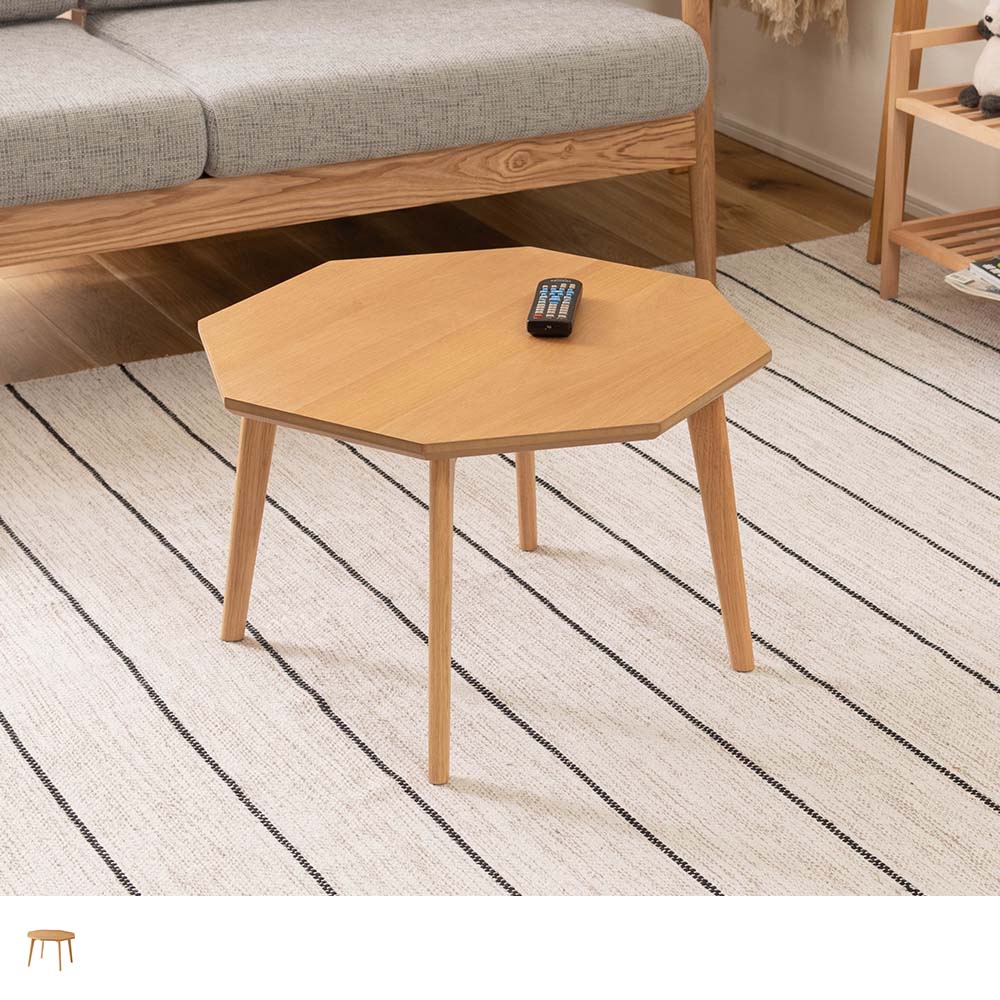 ホワイトオークの美しい木目が映える、八角形のローテーブル。