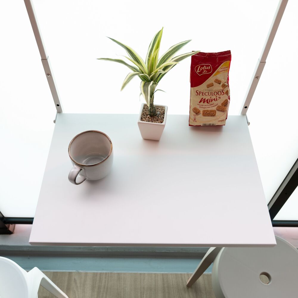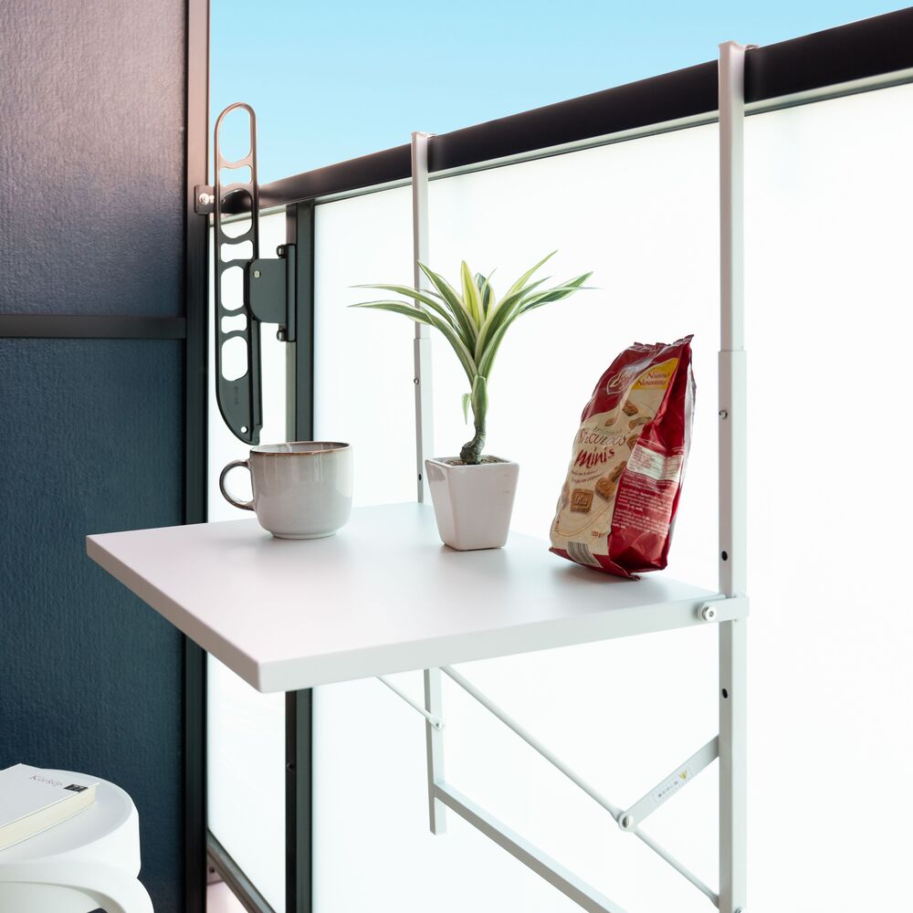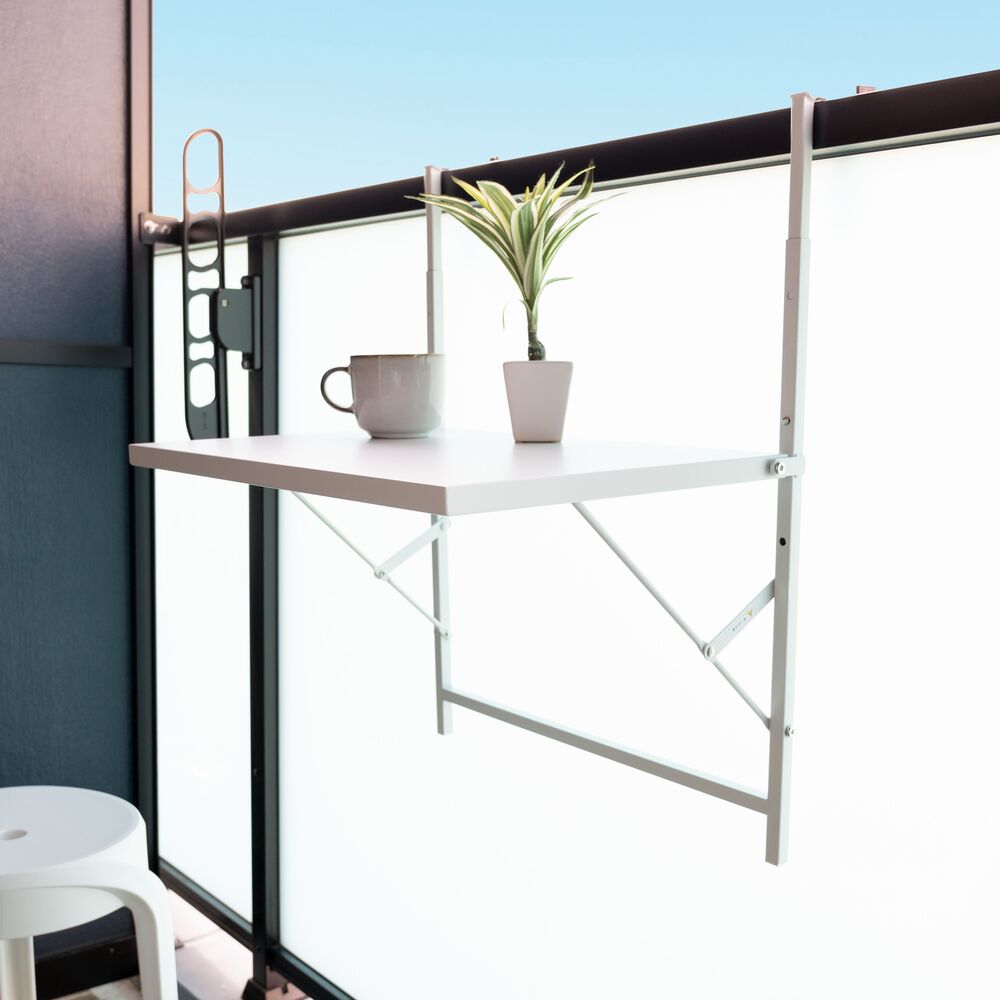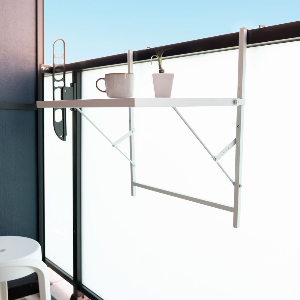 このテーブルは、ベランダの柵に引っ掛けるだけで、あっという間にあなただけの特等席を作り出します。
