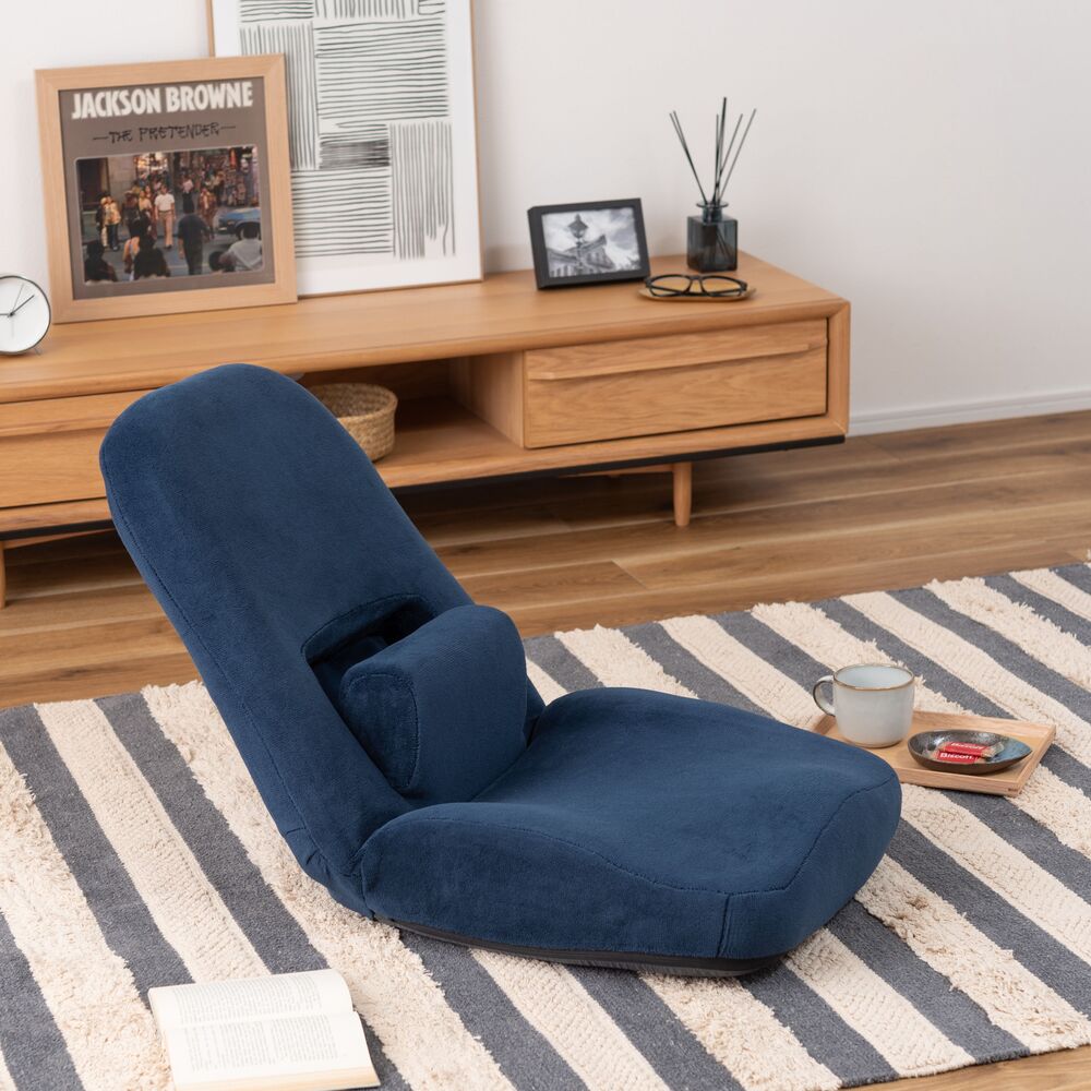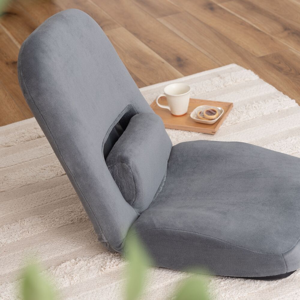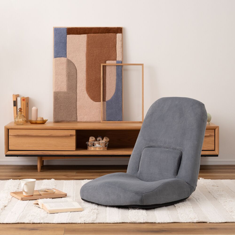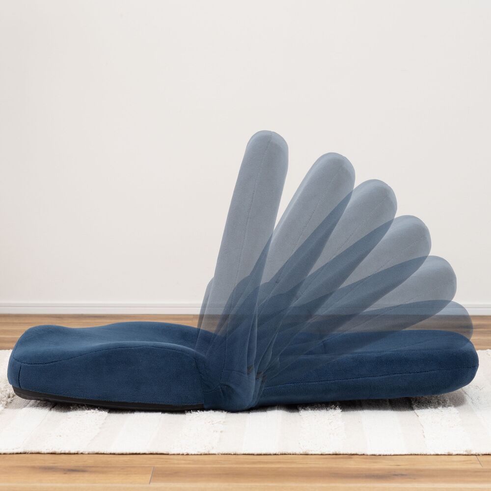 背もたれだけでなく、腰当て部分も14段階にリクライニングできるフロアチェア。