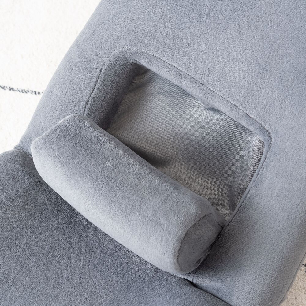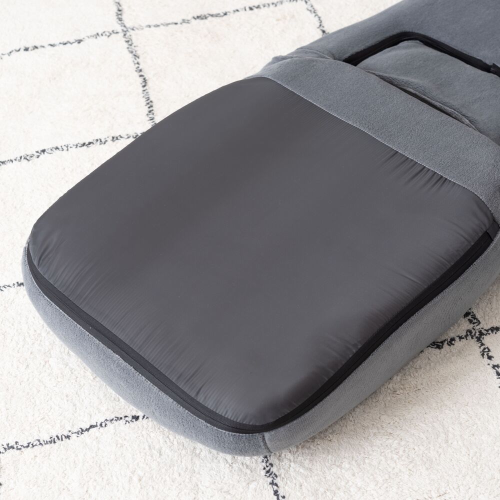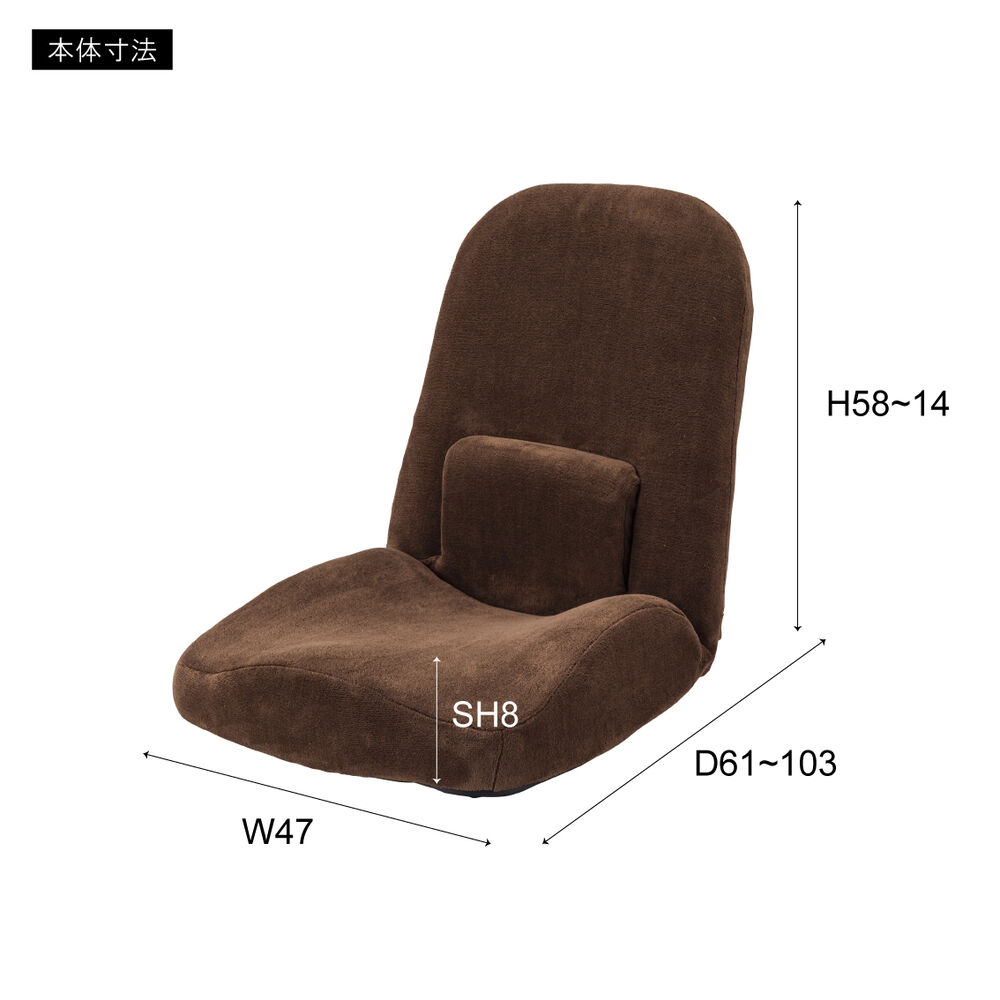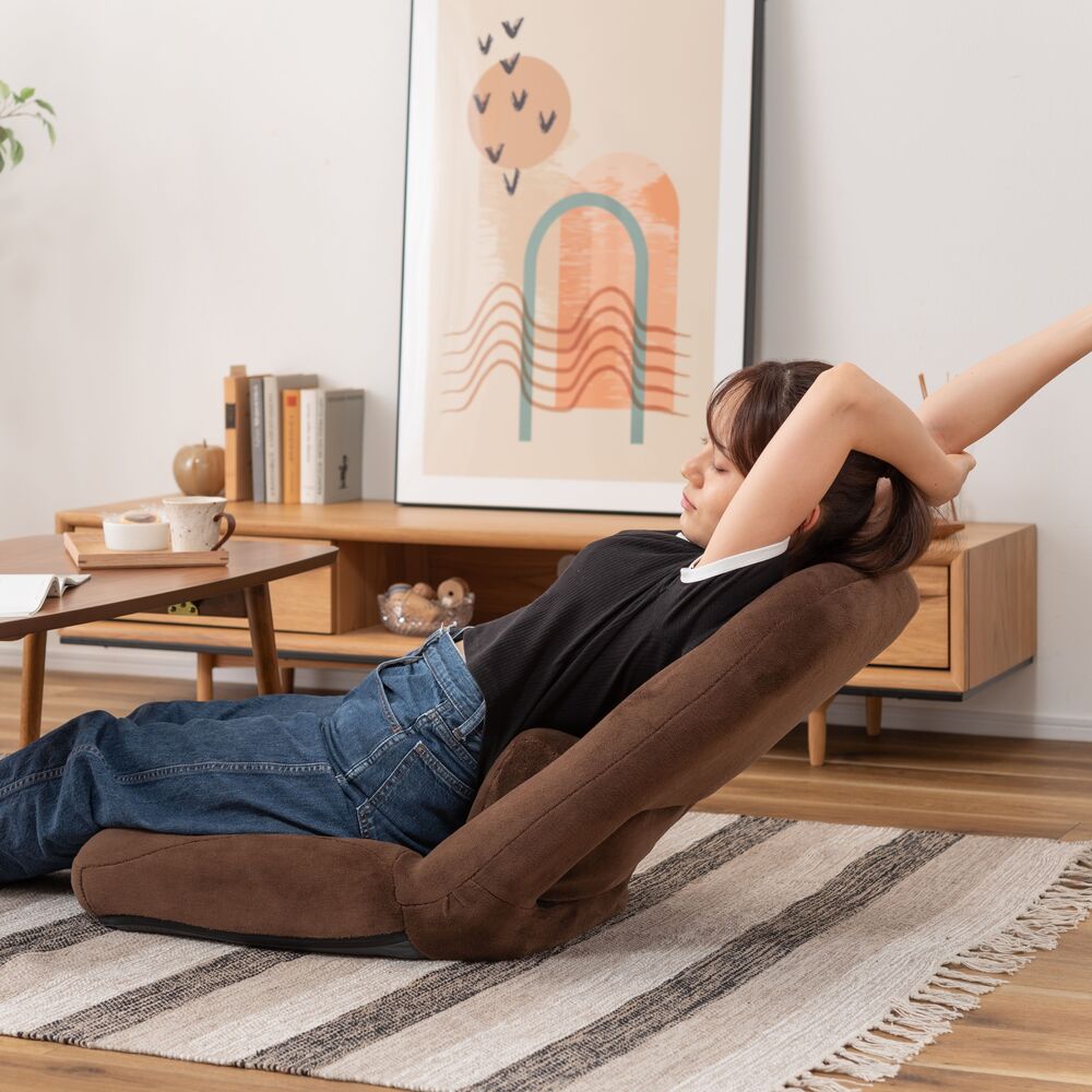 背もたれだけでなく、腰当て部分も14段階にリクライニングできるフロアチェア。