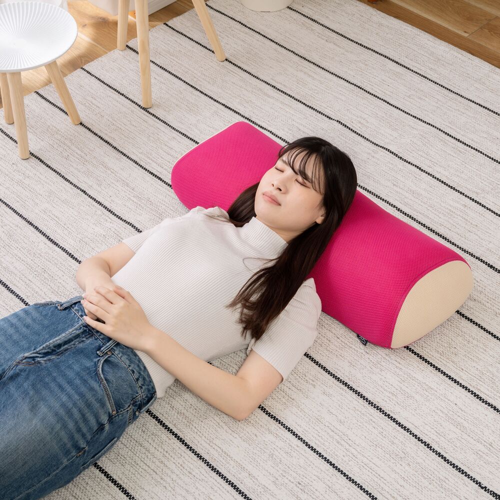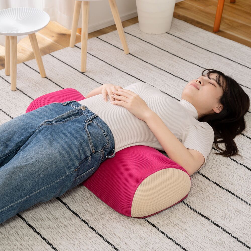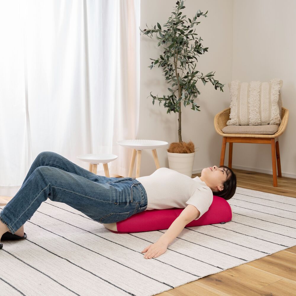 丸みを帯びたフォルムに体をあずけてぐーんと伸びをすれば、凝り固まった背筋が気持ちよくほぐれていきます。