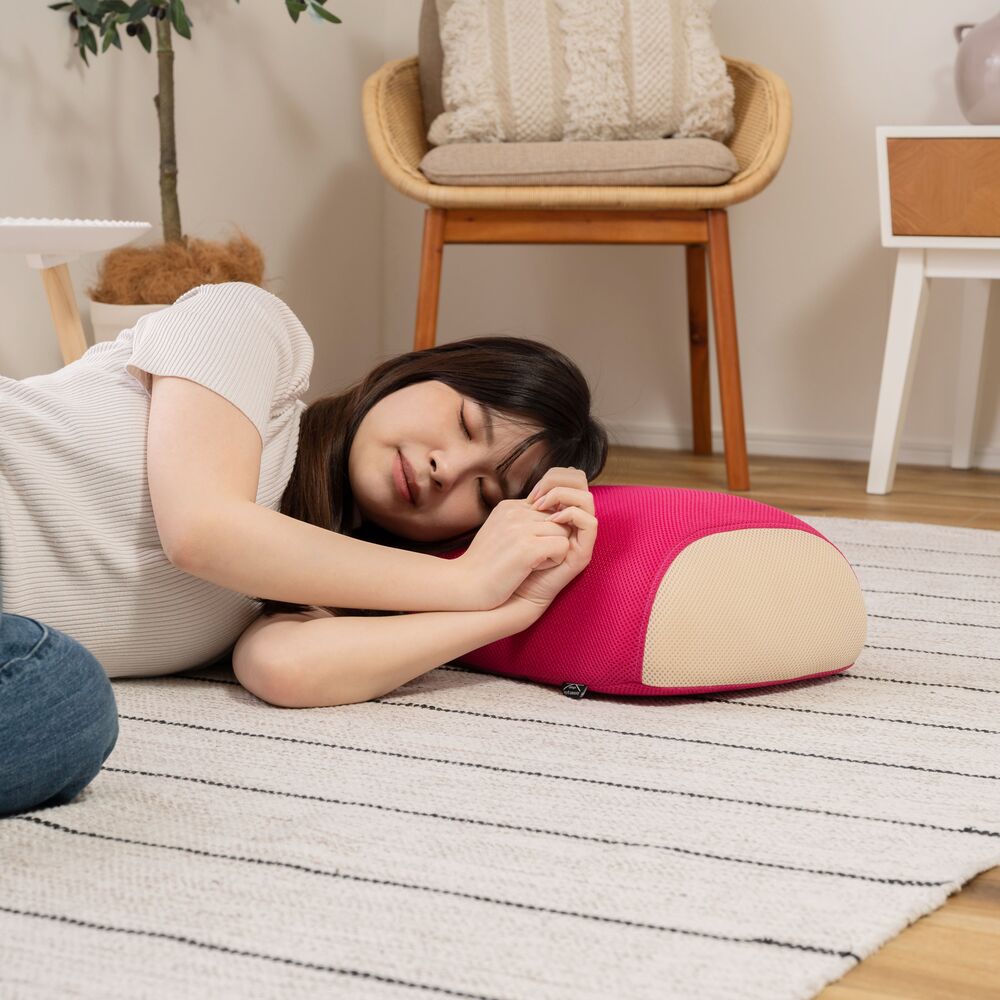 14段階のリクライニングをフルフラットにすれば、ごろ寝枕や足枕としても大活躍。