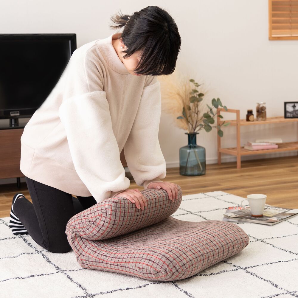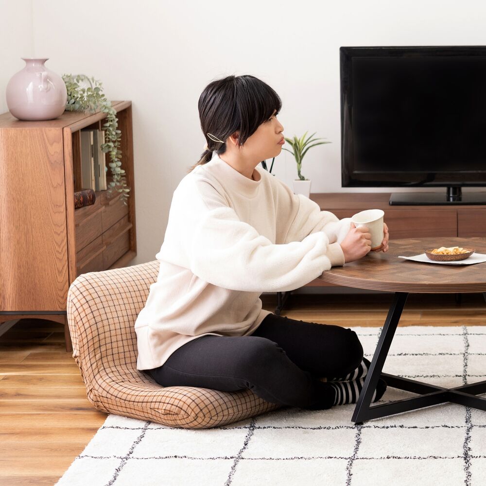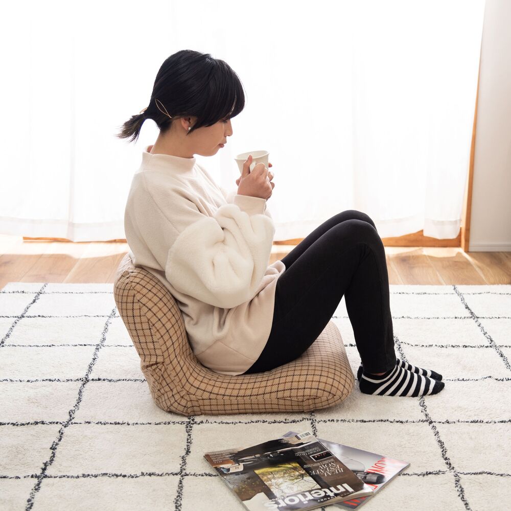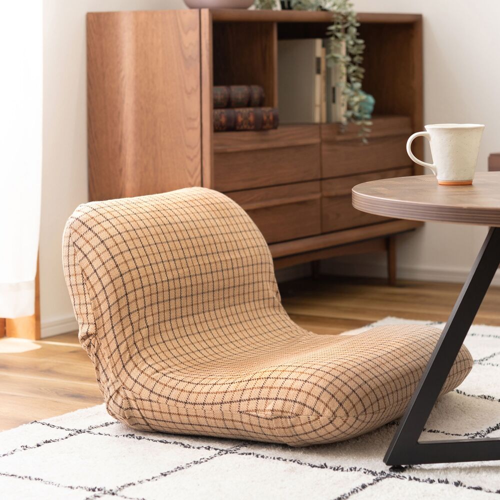 コロンと丸いフォルムと、優しいチェック柄が可愛らしいフロアチェア。