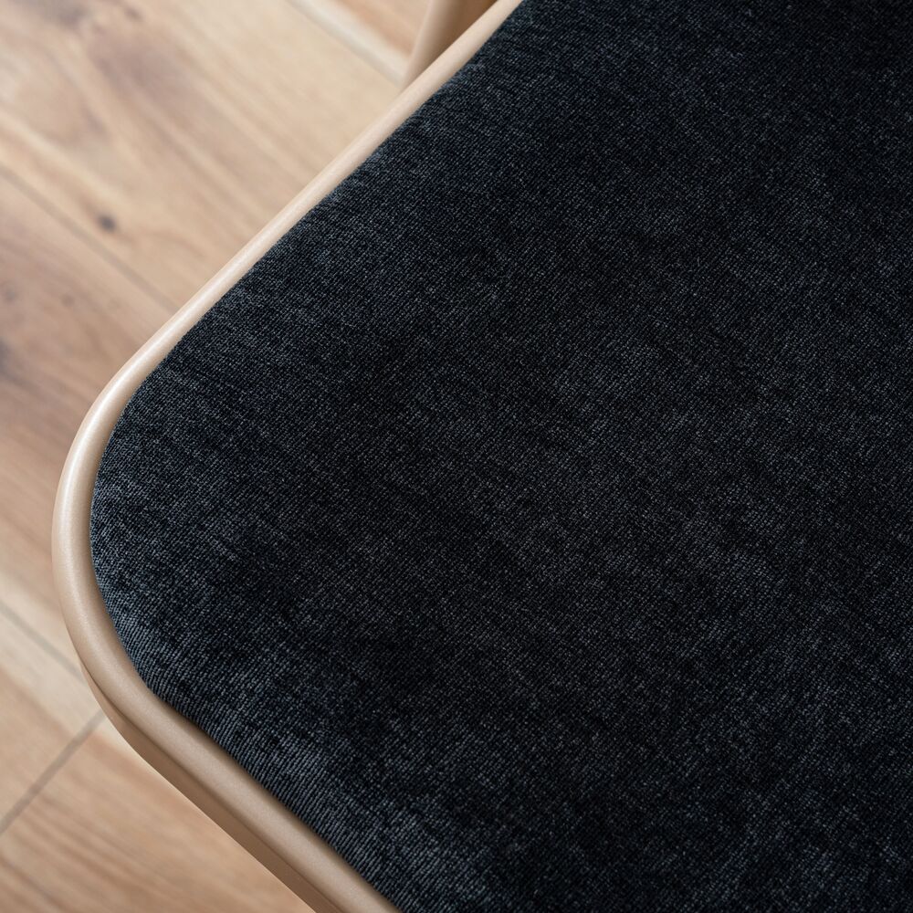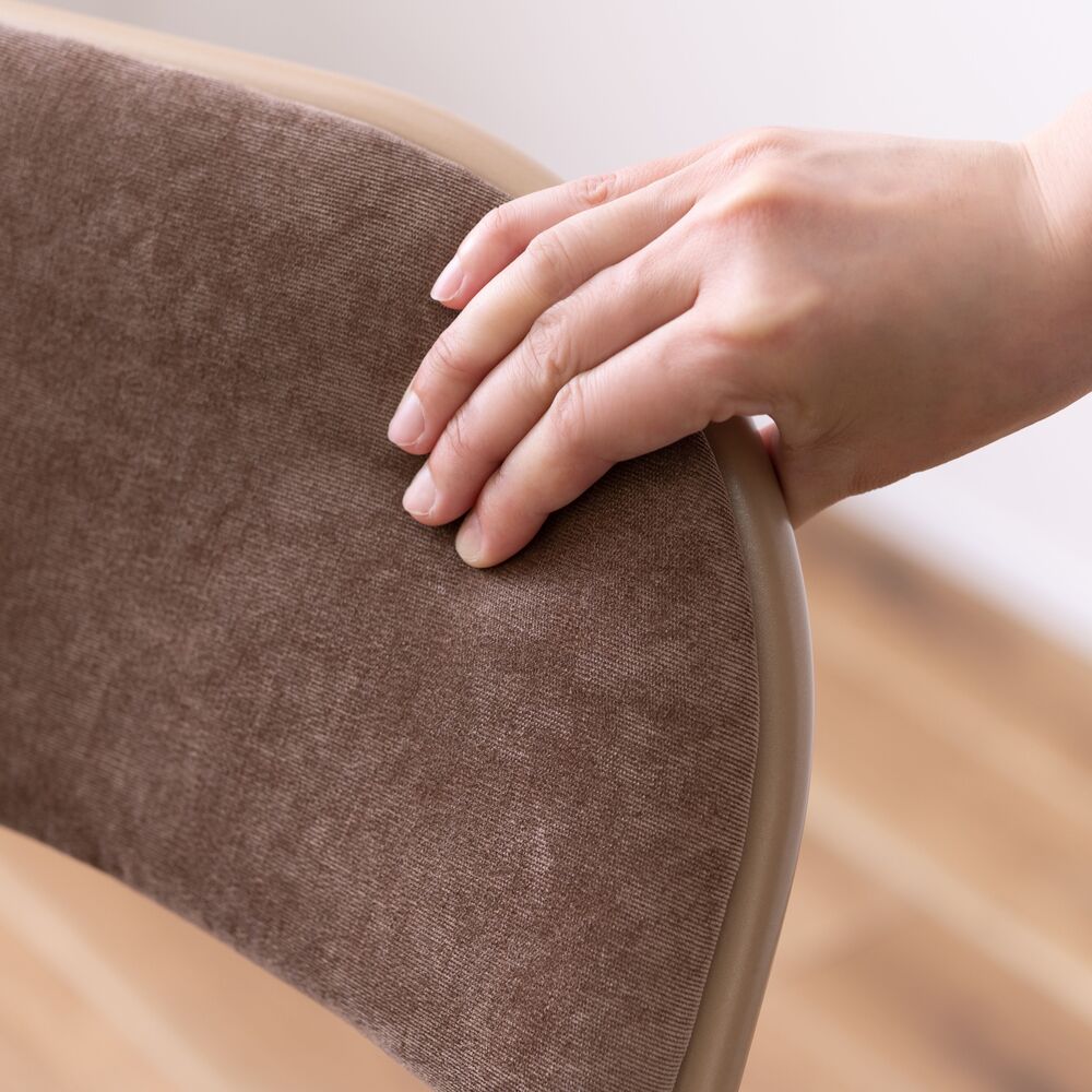しっとりとしたベロア調の生地と、上品なスチールフレームの組み合わせが、空間に彩りを添えます。