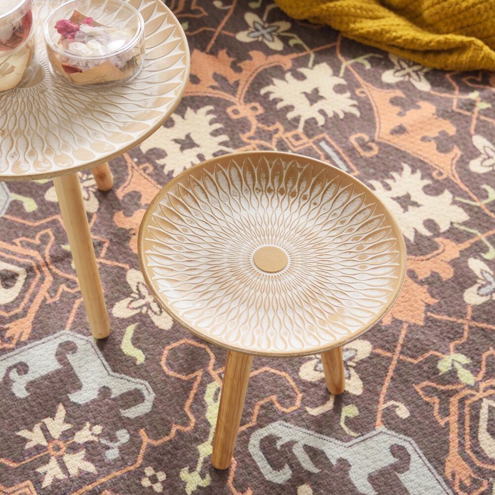 トルコやモロッコを思わせる、異国情緒漂うデザインが魅力のトレーテーブル。置くだけでお部屋がぐっと洗練された印象に。