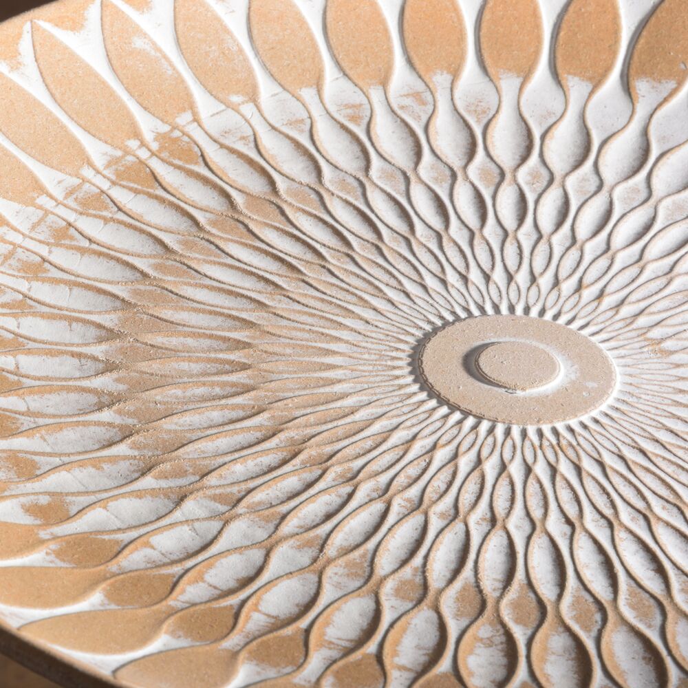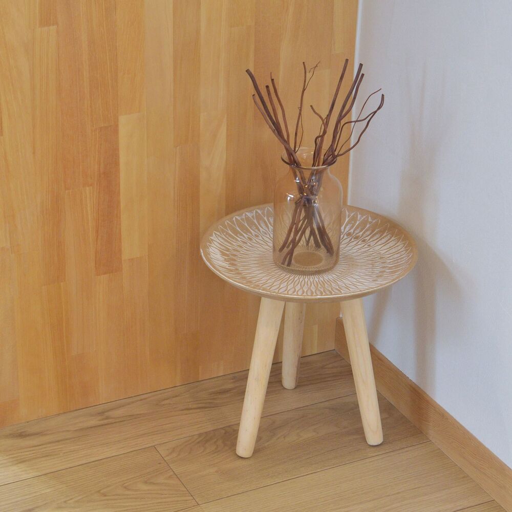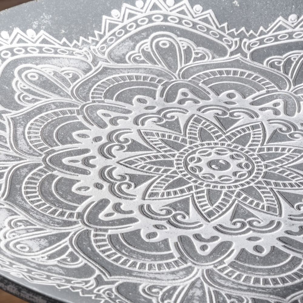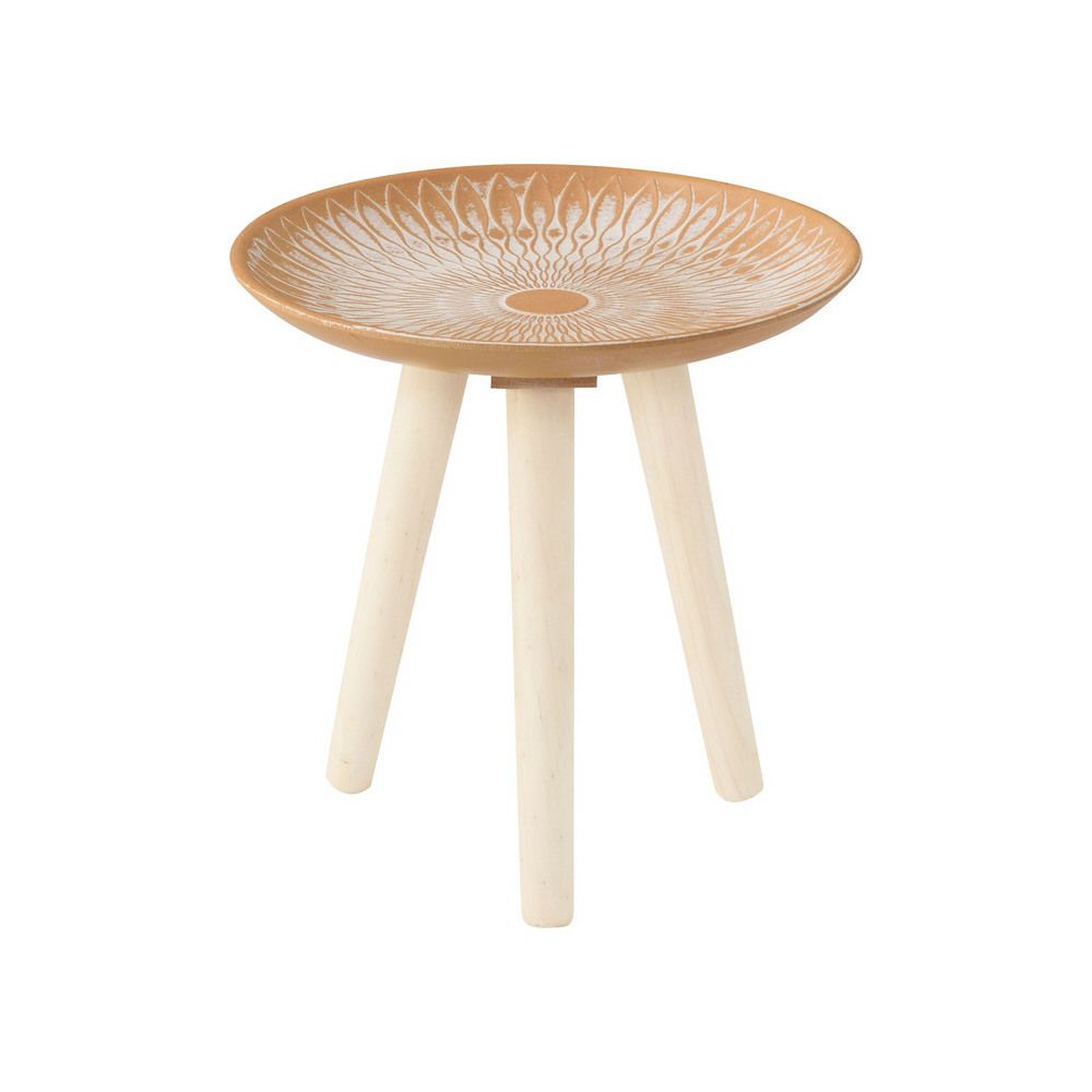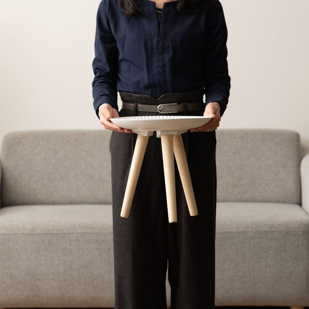 繊細な模様が施されたトレー部分には繊維板を、脚部には天然木パインを使用し、見た目の美しさとあたたかみを両立。約1kgと軽量なので、持ち運びもスムーズです。