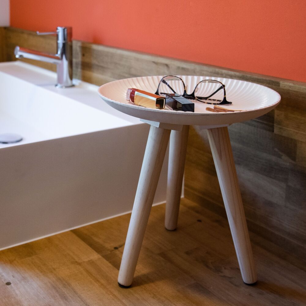 サイドテーブルとしてはもちろん、アロマやキャンドルを飾るディスプレイ台、ベッド横のナイトテーブル、小物置きとしても大活躍。
