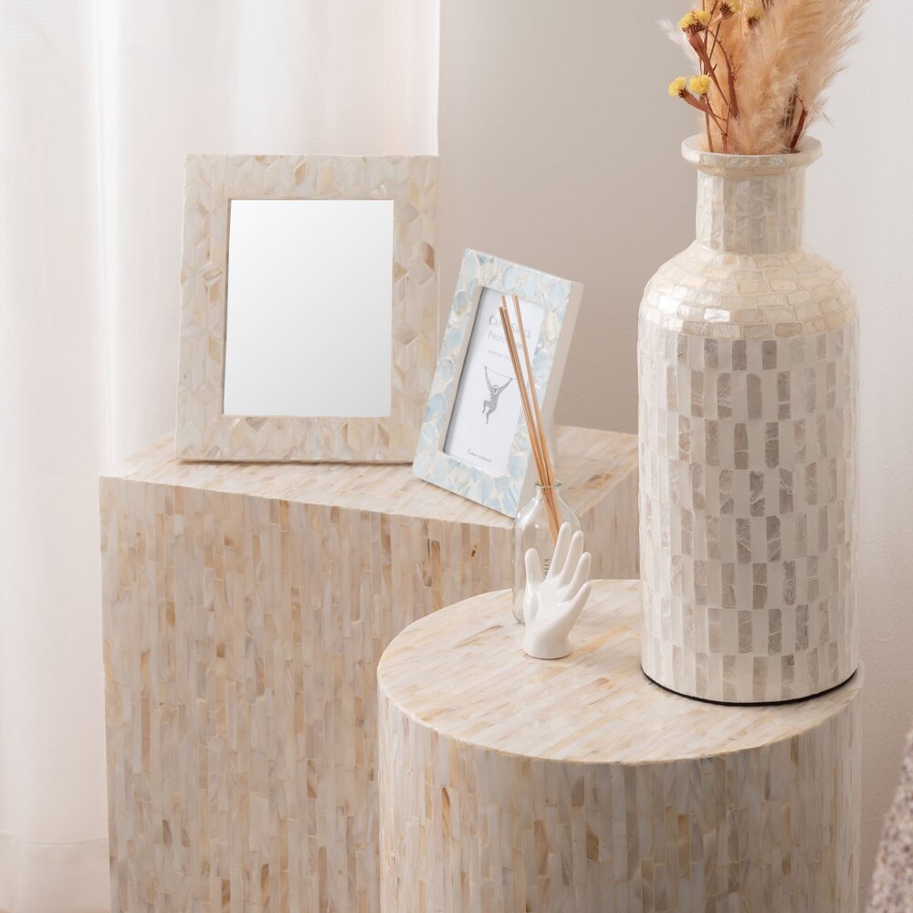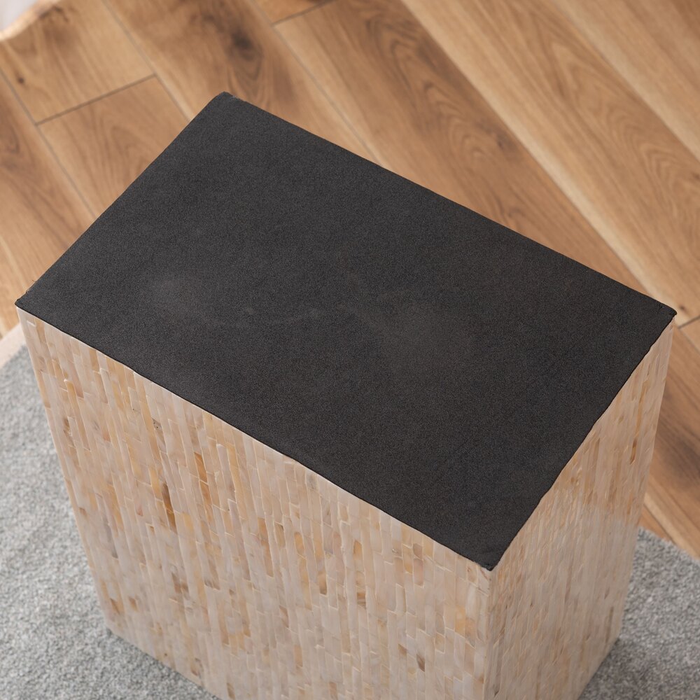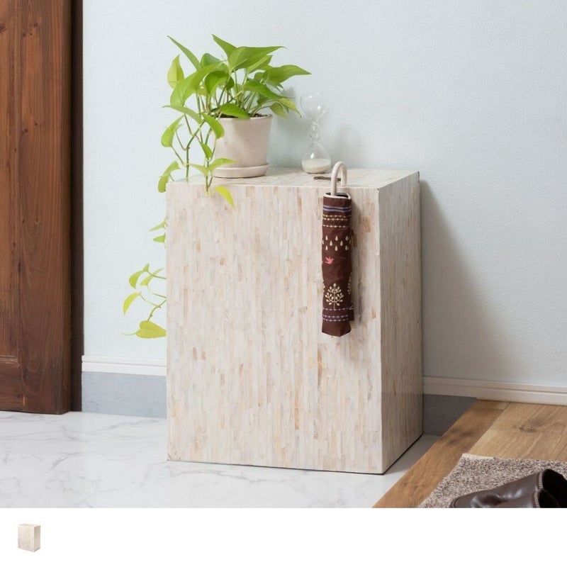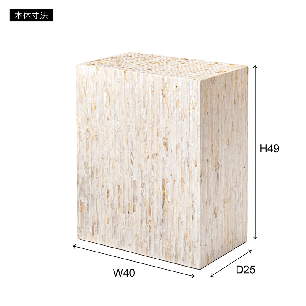 真珠のような美しい光沢が魅力のマザーオブパールを全面にあしらったサイドテーブル。