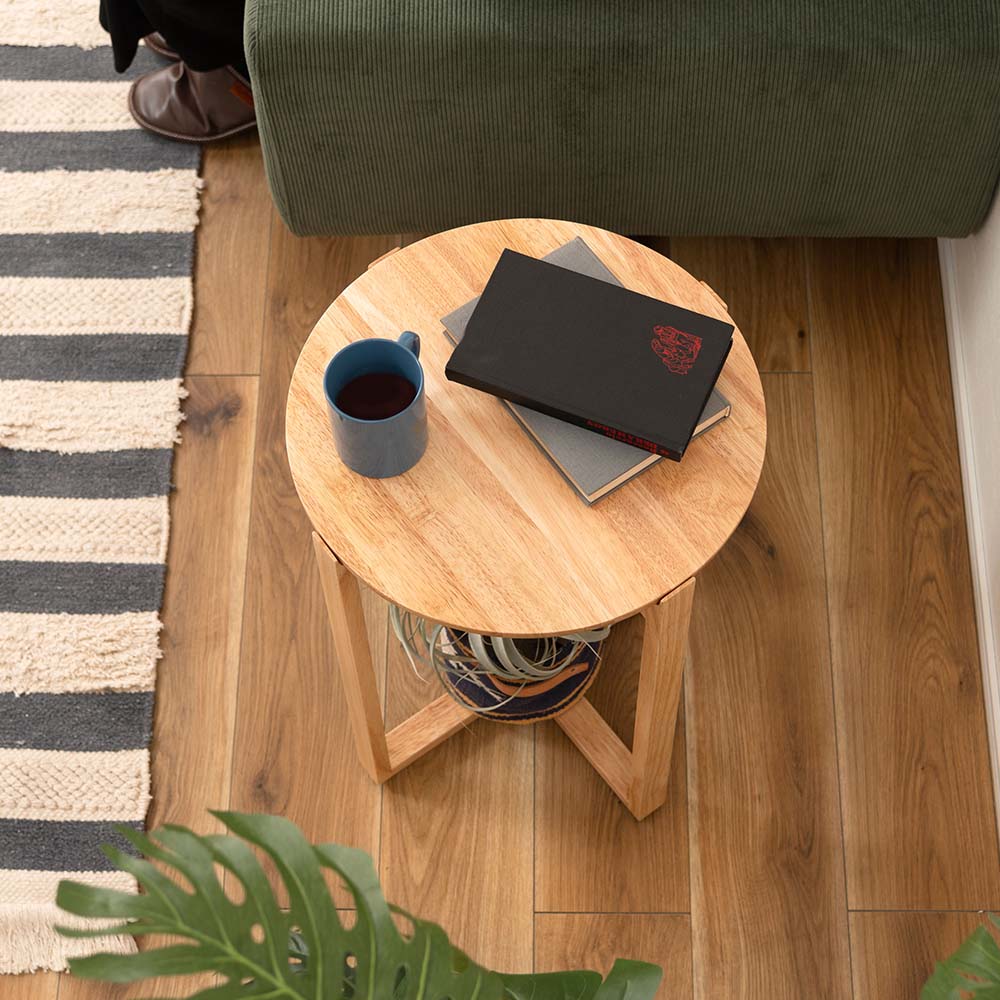 天然木の温もりが感じられる、北欧風デザインのサイドテーブル。