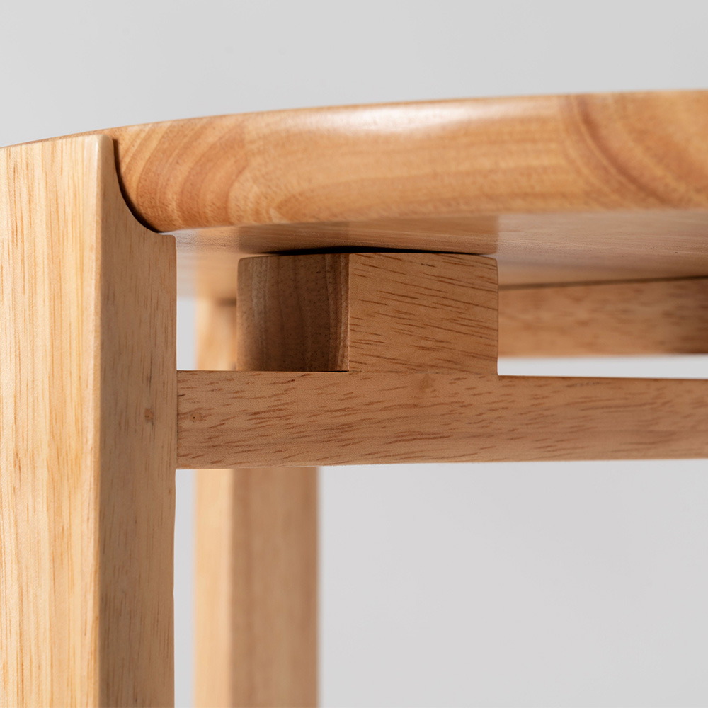 丸みを帯びた天板は手触りもやさしく、脚裏にはアジャスター付きでガタつきも抑制。