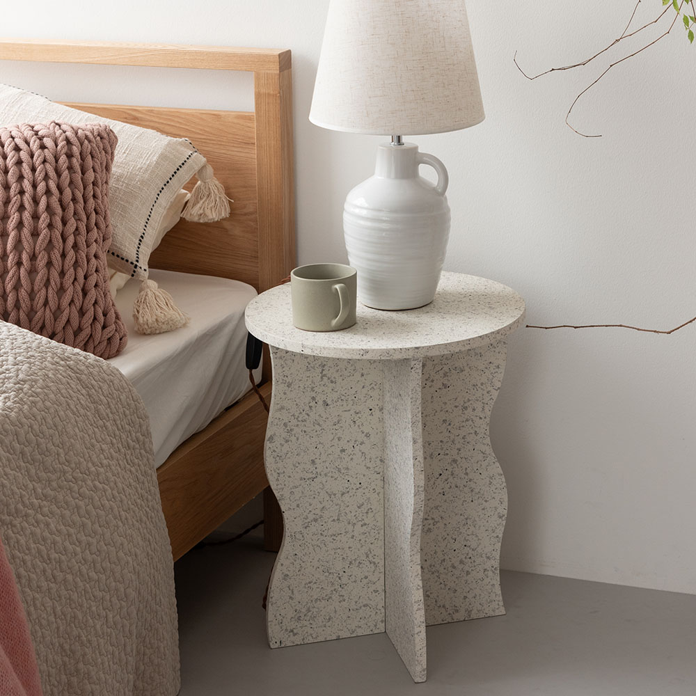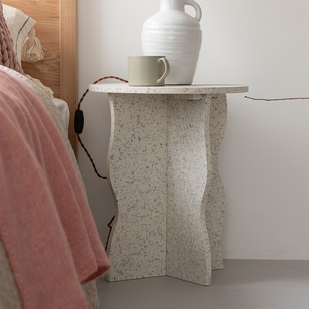 波打つようなユニークなフォルムと、トレンドのテラゾー柄が、洗練されつつ可愛らしい雰囲気を演出します。