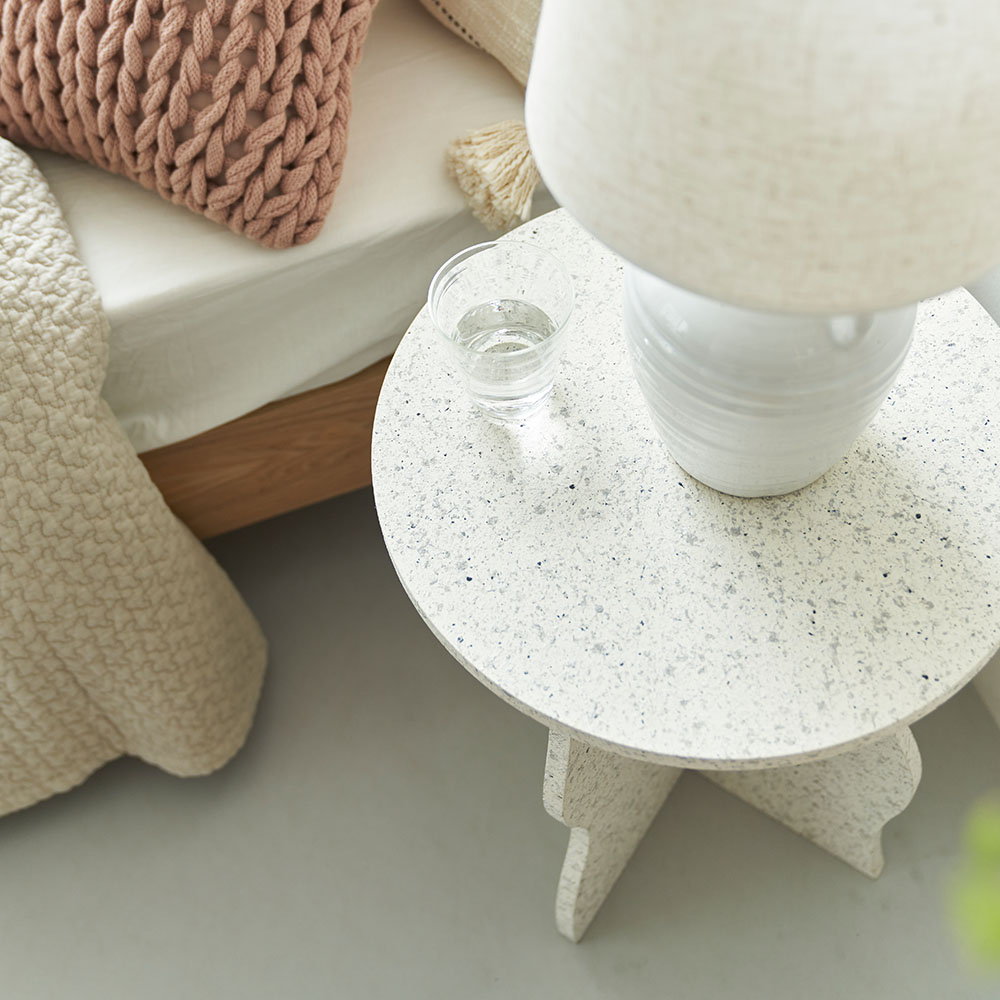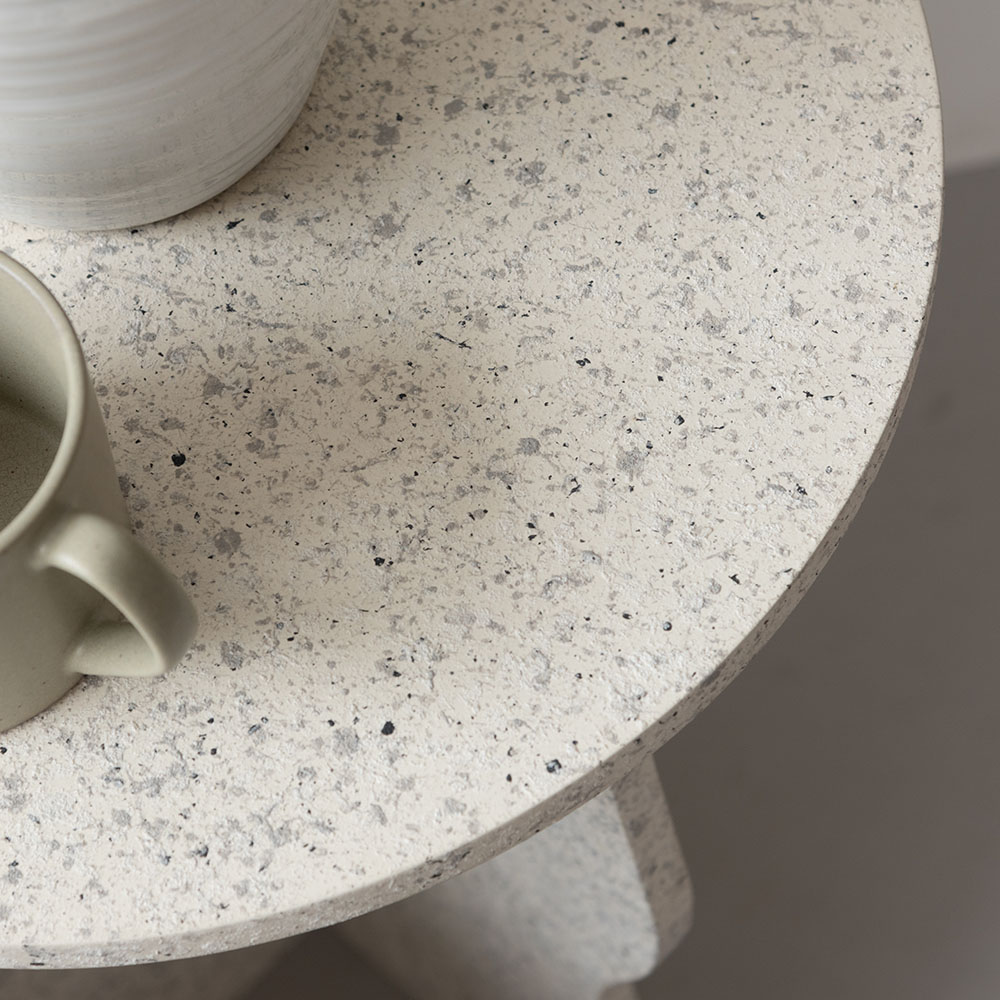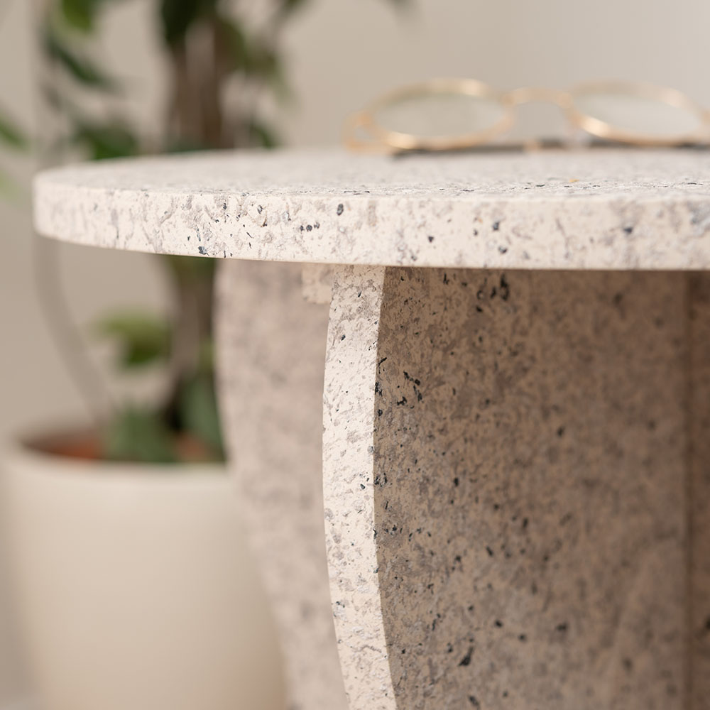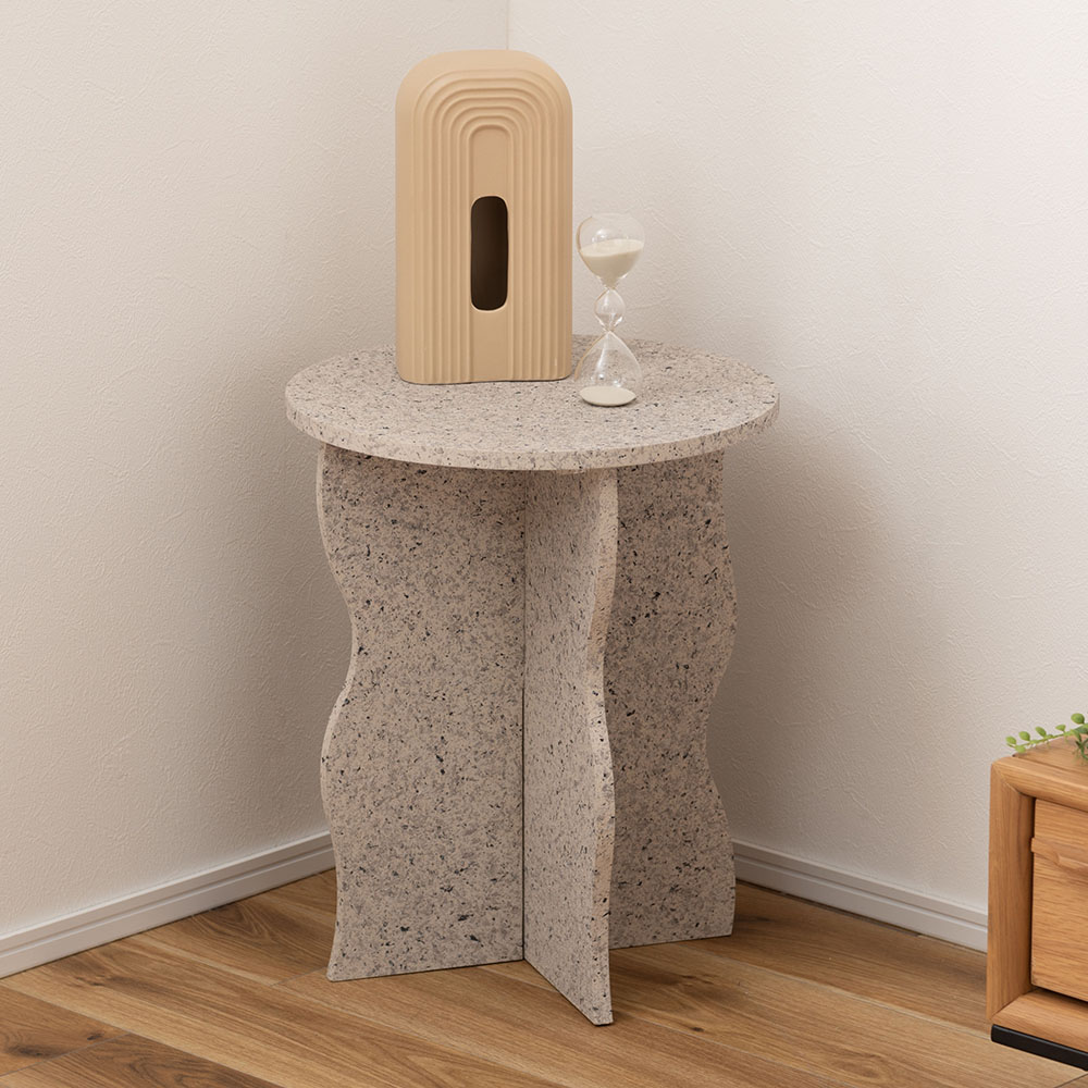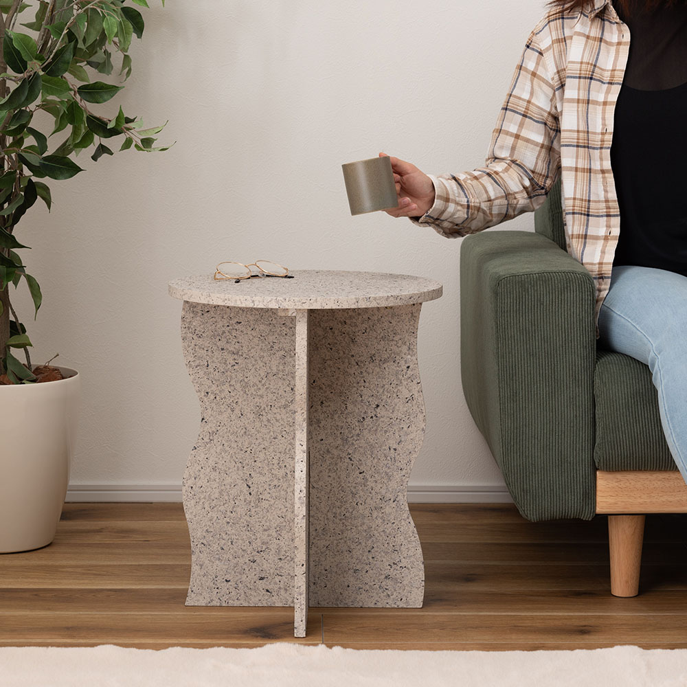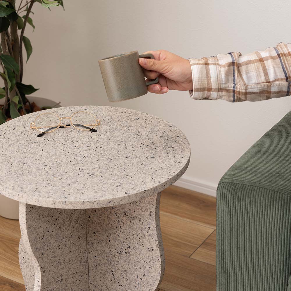 表面の凹凸ある質感が、デザイン性を高めていて可愛らしいサイドテーブルです。