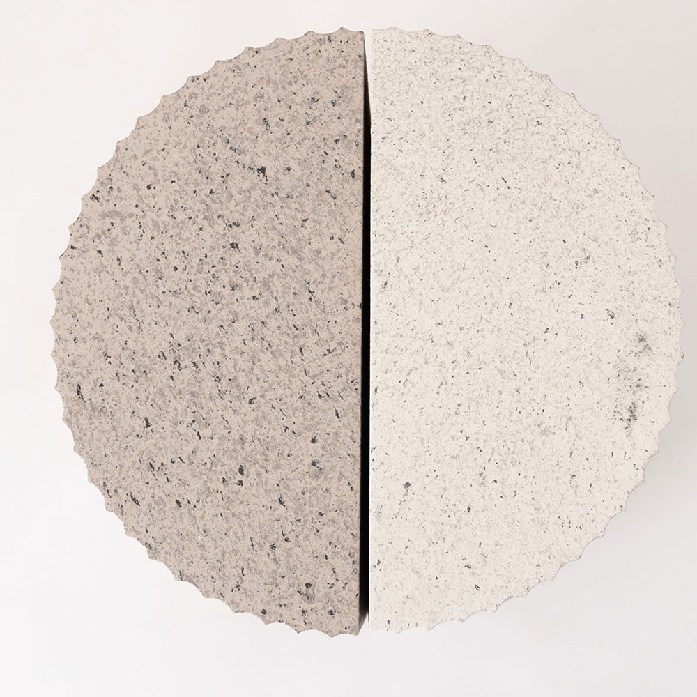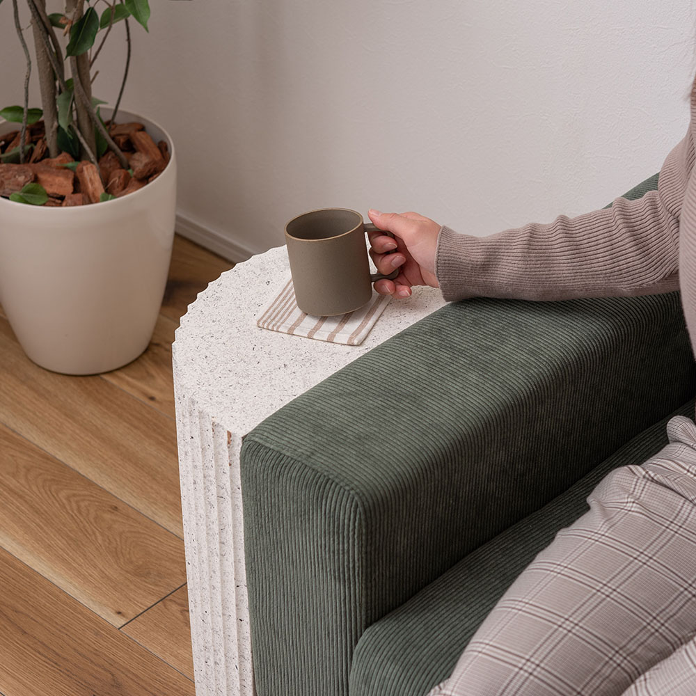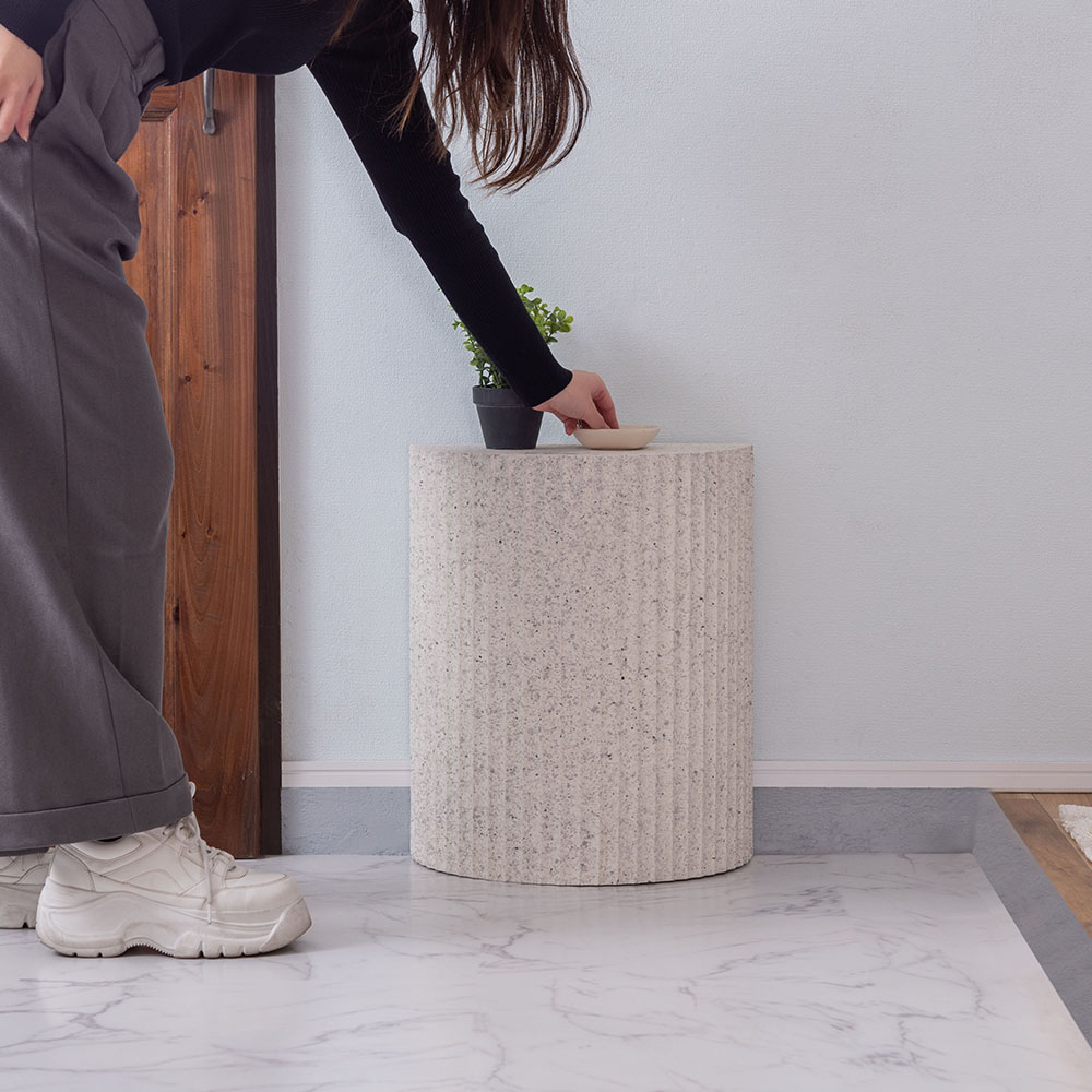 リズミカルに刻まれた縦のラインと、トレンドのテラゾー柄が、まるでアートオブジェのような存在感を放ちます。