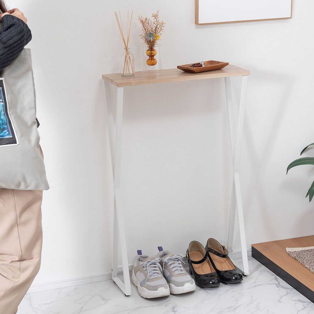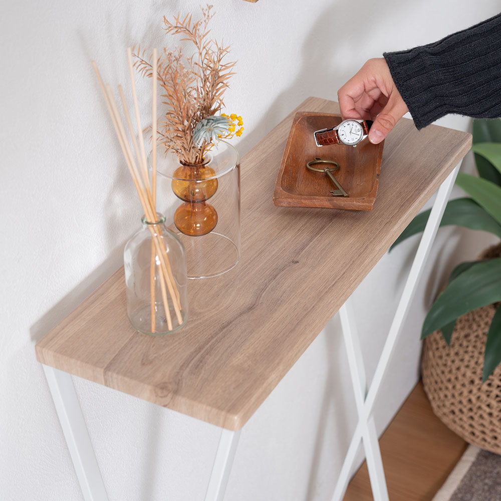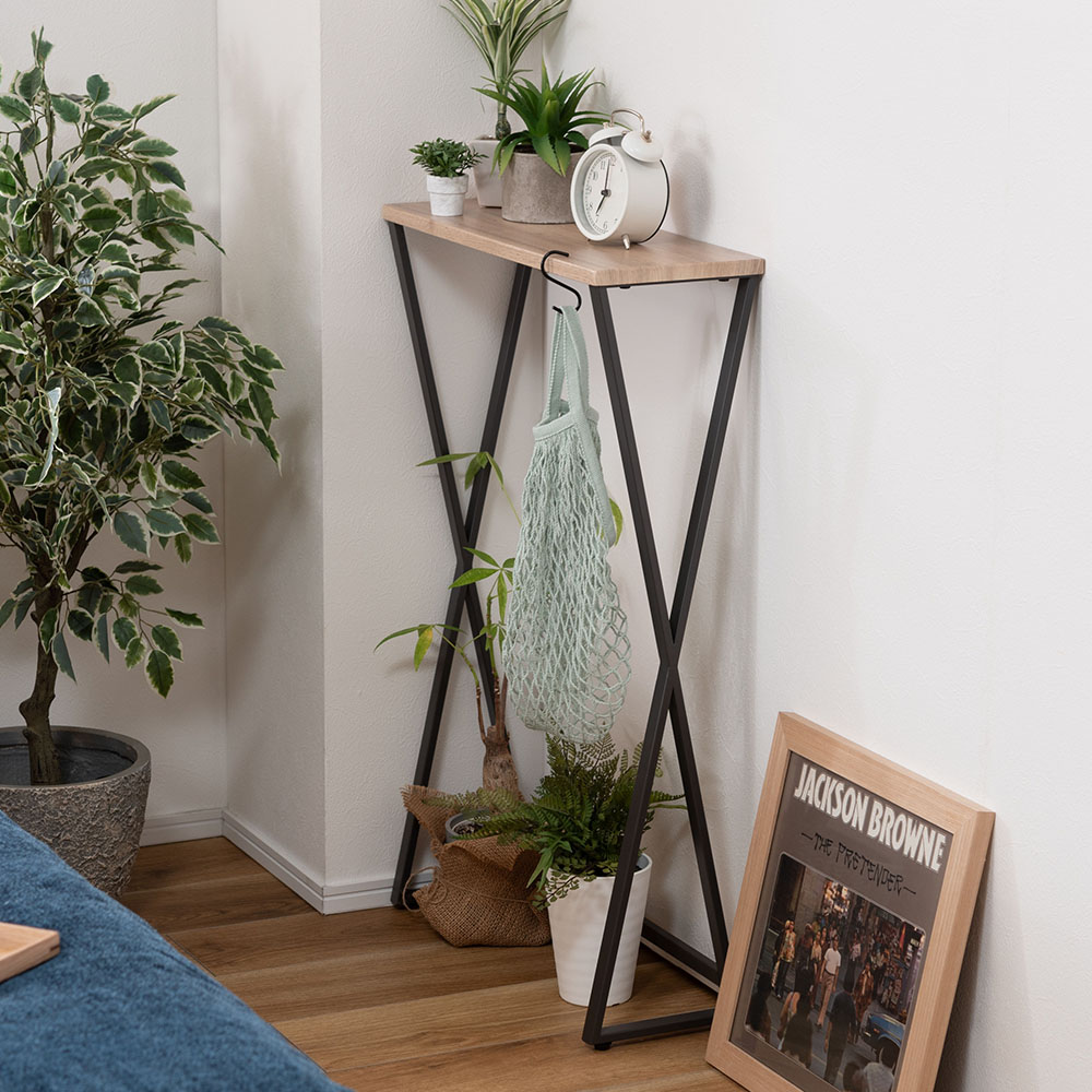 鍵やディフューザーを置くのはもちろん、お気に入りの小物を飾るディスプレイスペースとしても活躍。空間に彩りと奥行きを与えてくれる一台です。