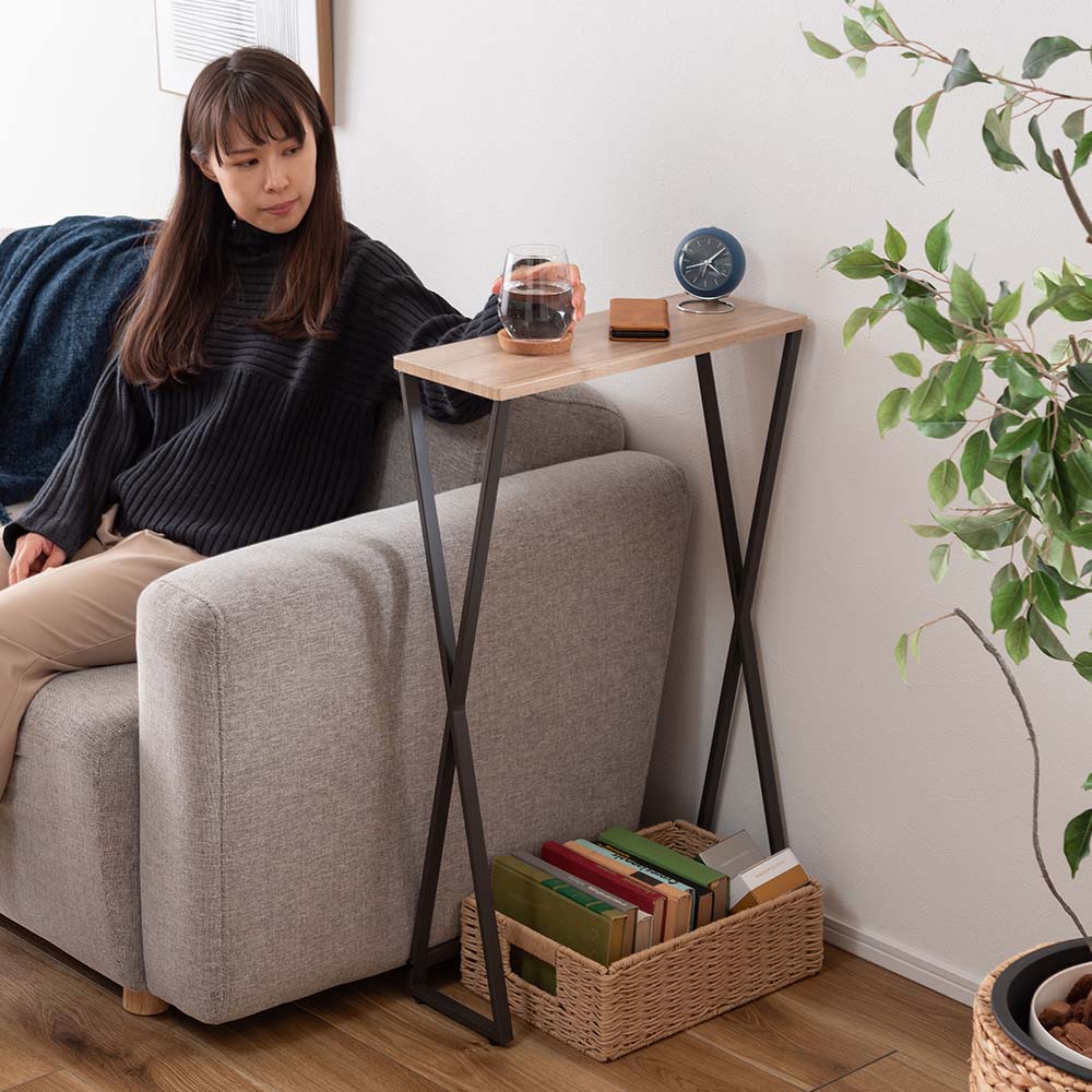 交差したスチール脚のモダンなデザインと、温かみのある木目調の天板が、どんなお部屋にも馴染みます。