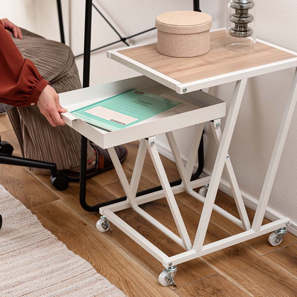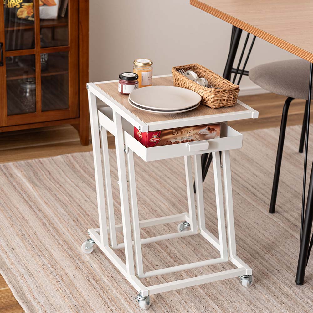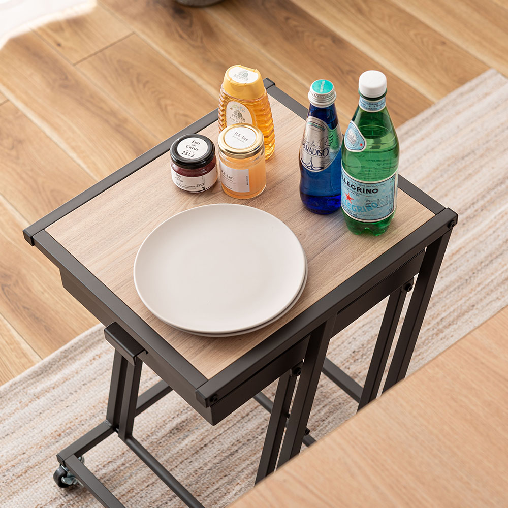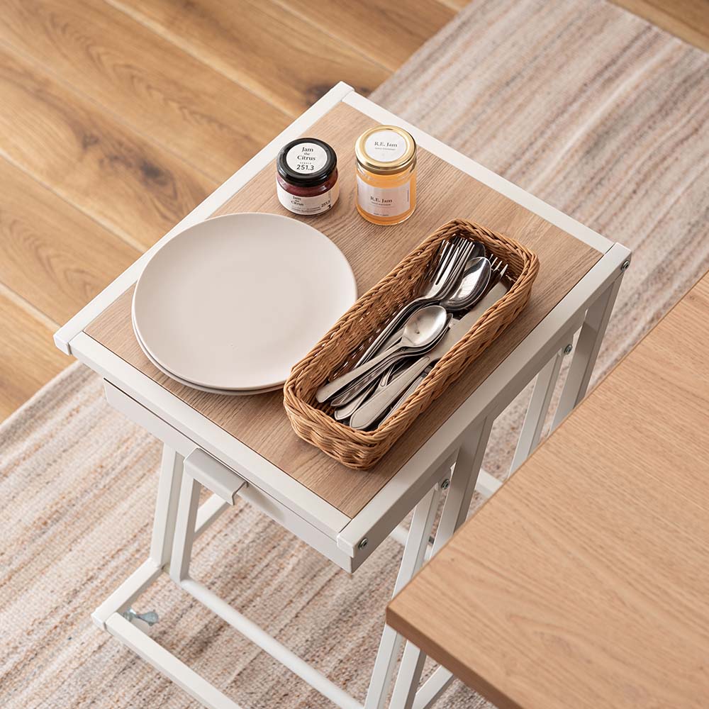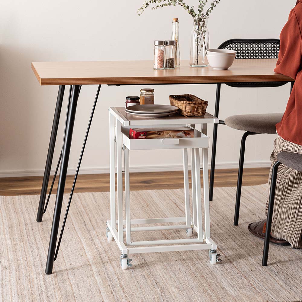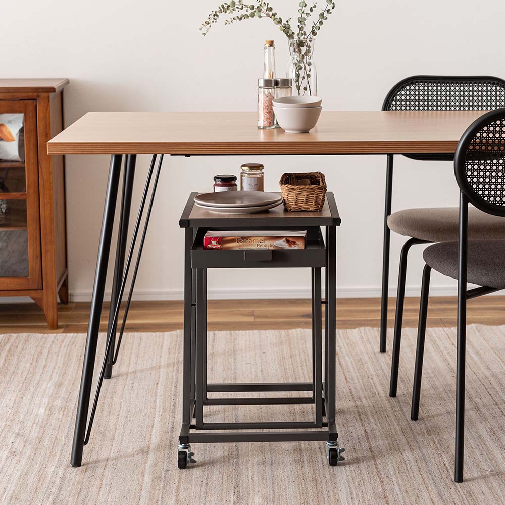 このテーブルは、大小2つがセットになった便利なネスト式。重ねてコンパクトに、引き出してワイドにと、シーンに合わせて柔軟に使えます。