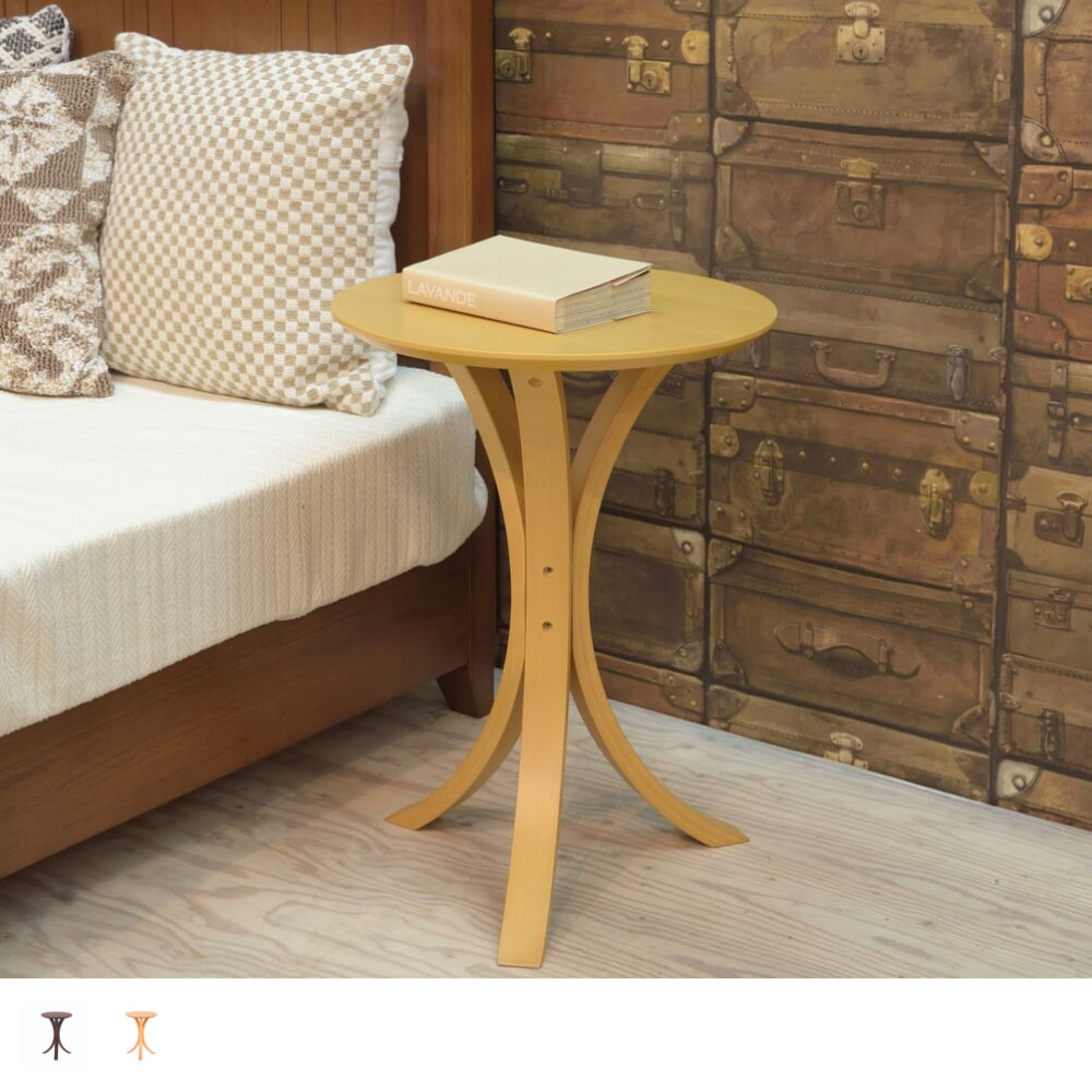 ソファやベッドのそばで、コーヒーカップや本を置くのにちょうどいいサイズ感。