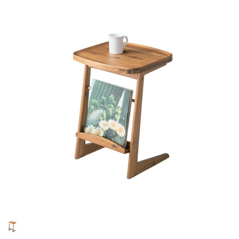 深みのある色合いと、豊かな木目が美しいアカシア天然木のサイドテーブル。