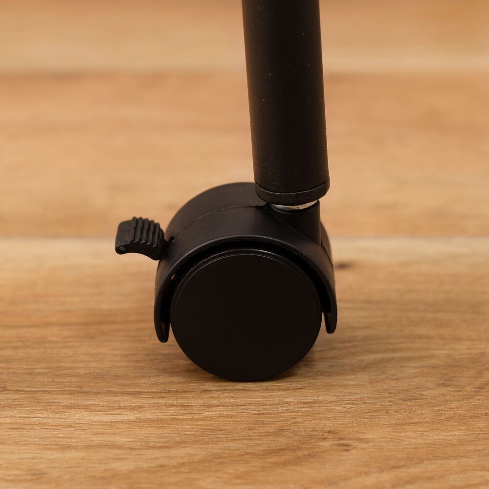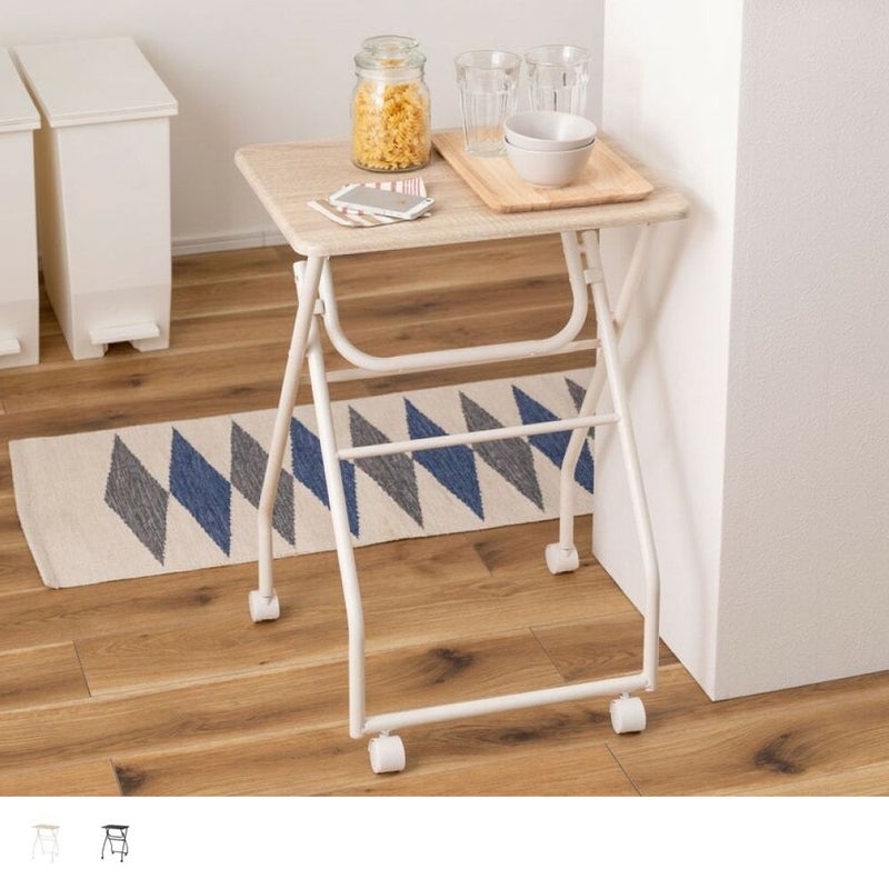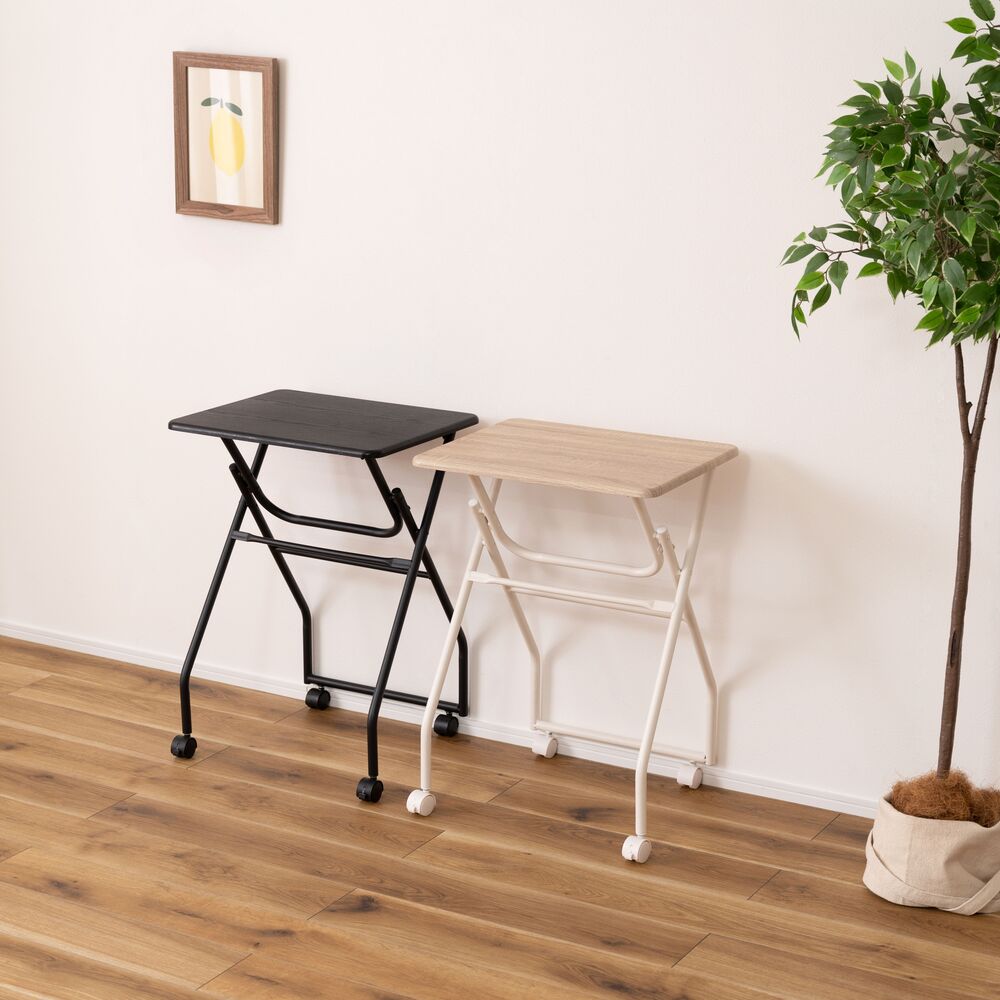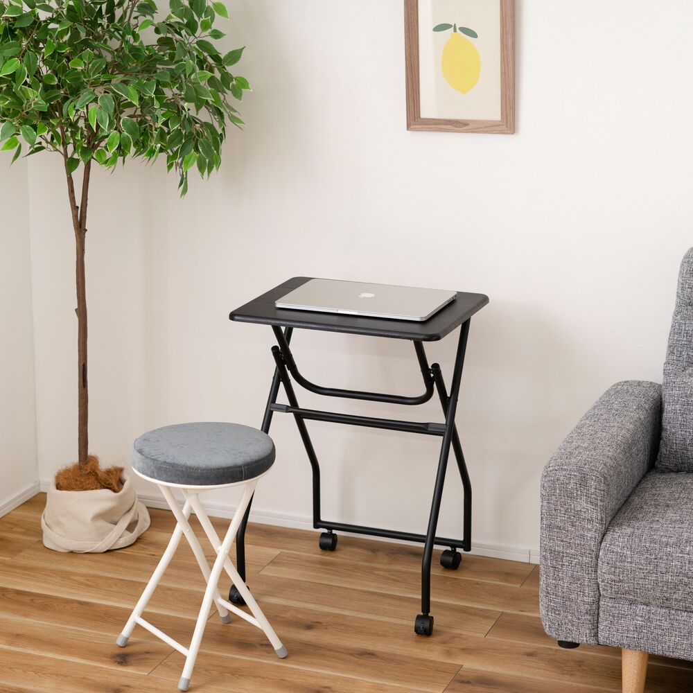 キャスター付きで移動はスムーズ。使わない時はパタンと折りたたんで、そのまま立てておけるので収納場所にも困りません。