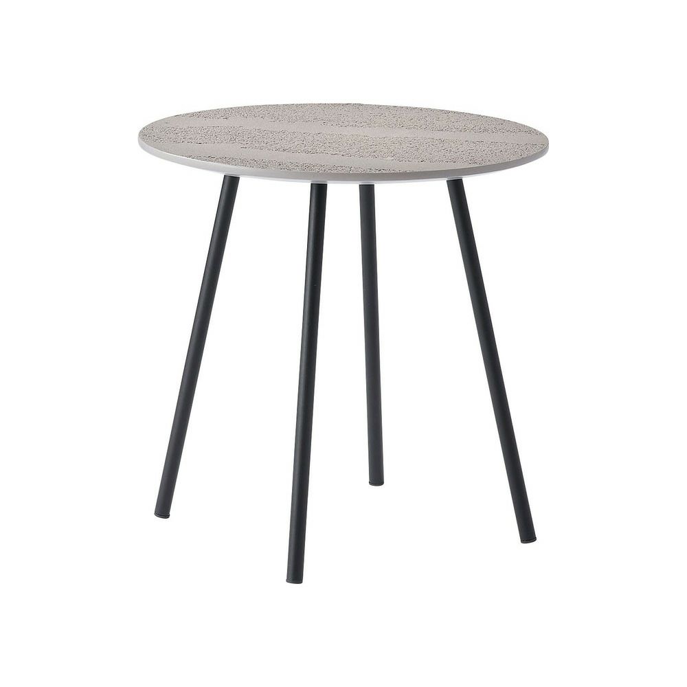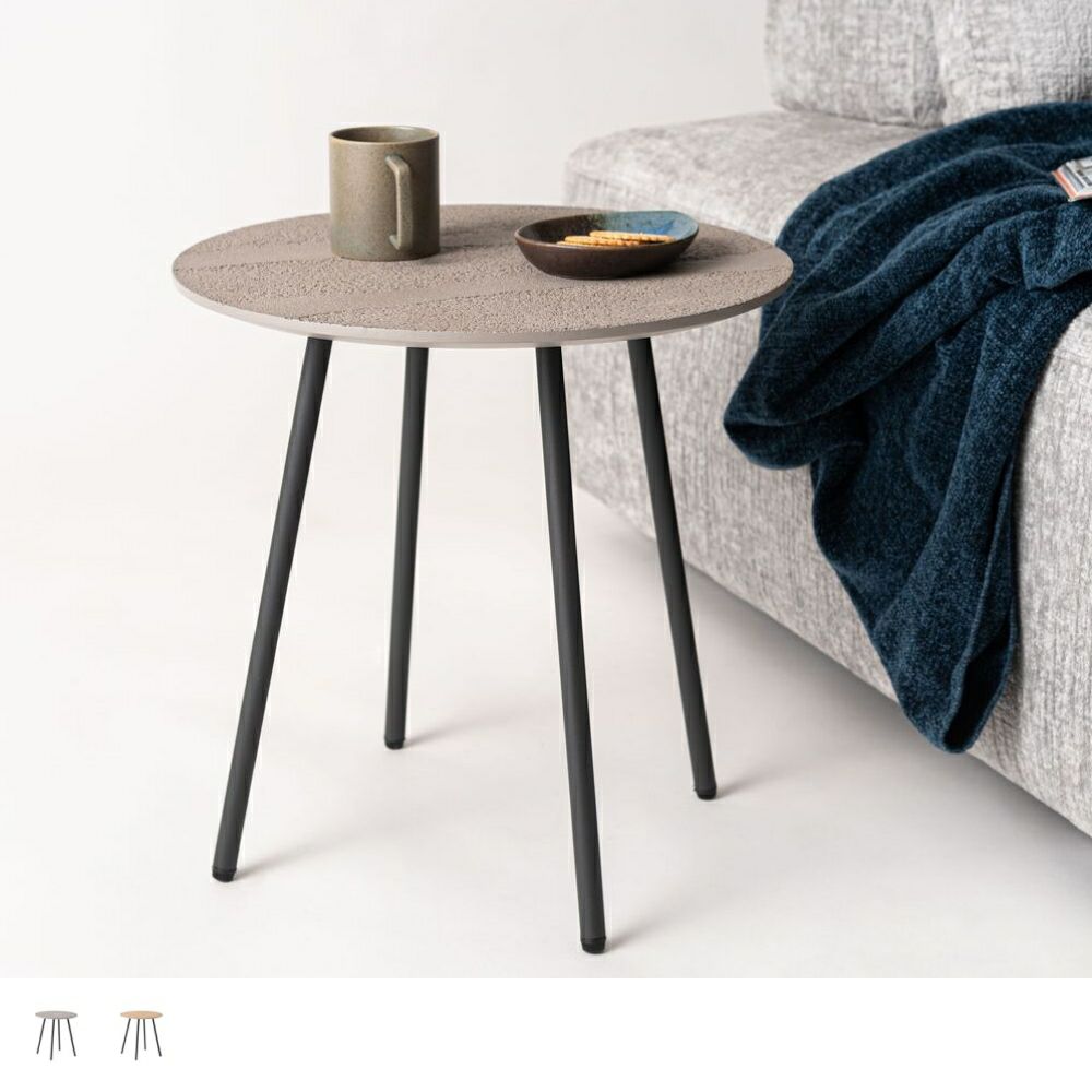 まるでコンクリートのような、凹凸のある豊かな表情を持つ天板。シャープなブラックスチールの脚と組み合わせることで、洗練されたモダンな雰囲気を演出します。