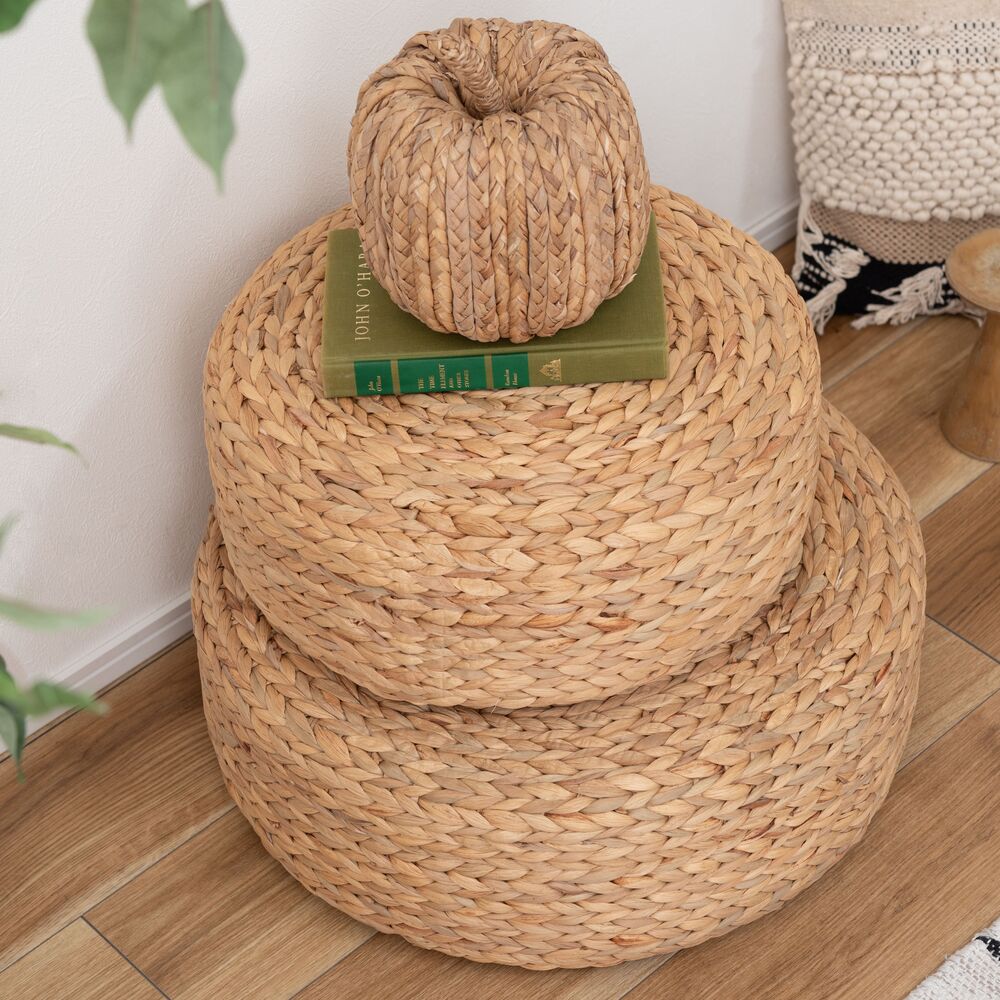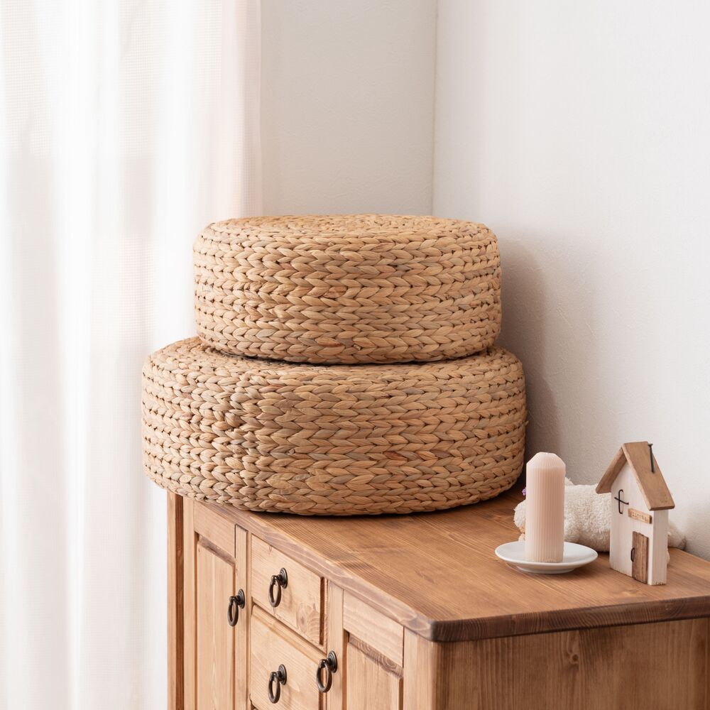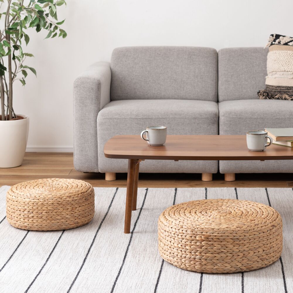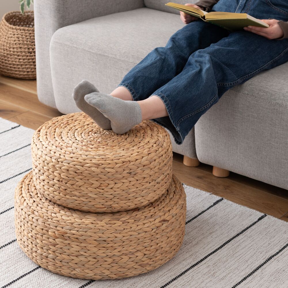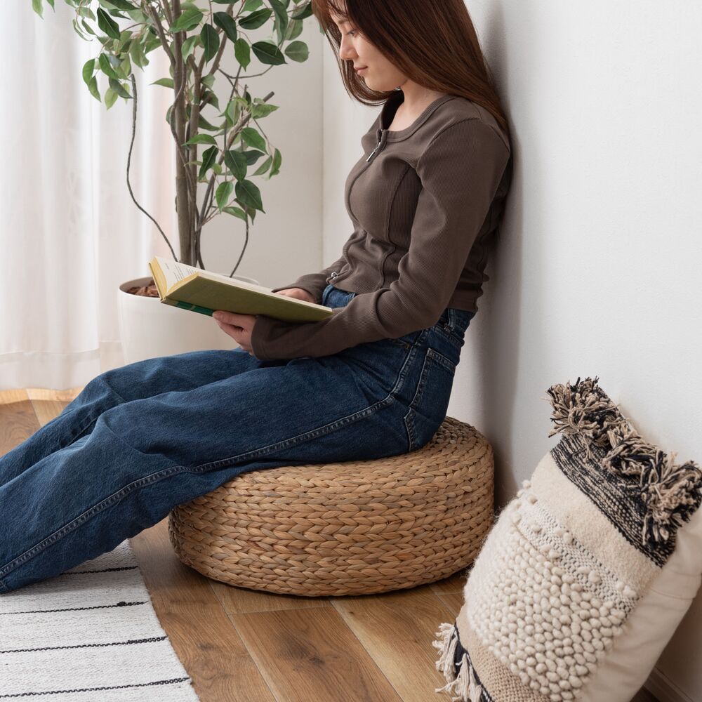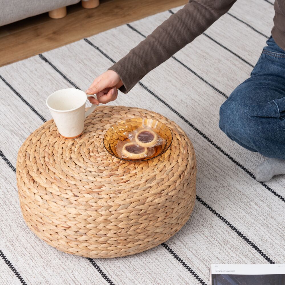 丁寧に編み込まれた天然素材が、お部屋にやさしい空気をもたらすロースツール。