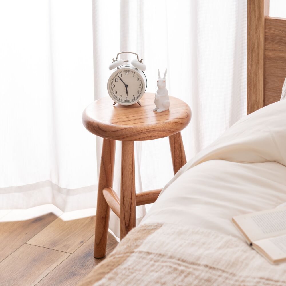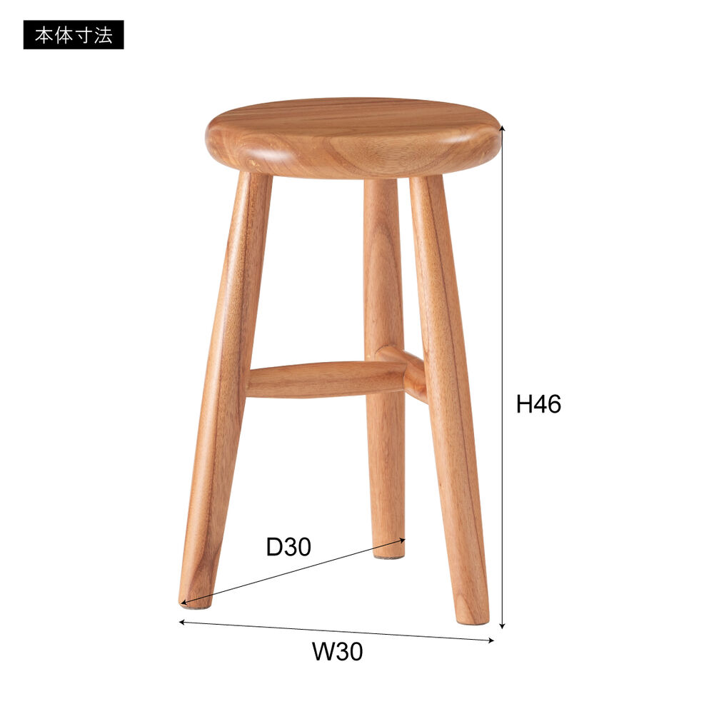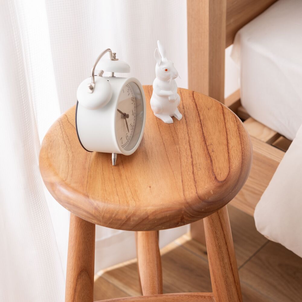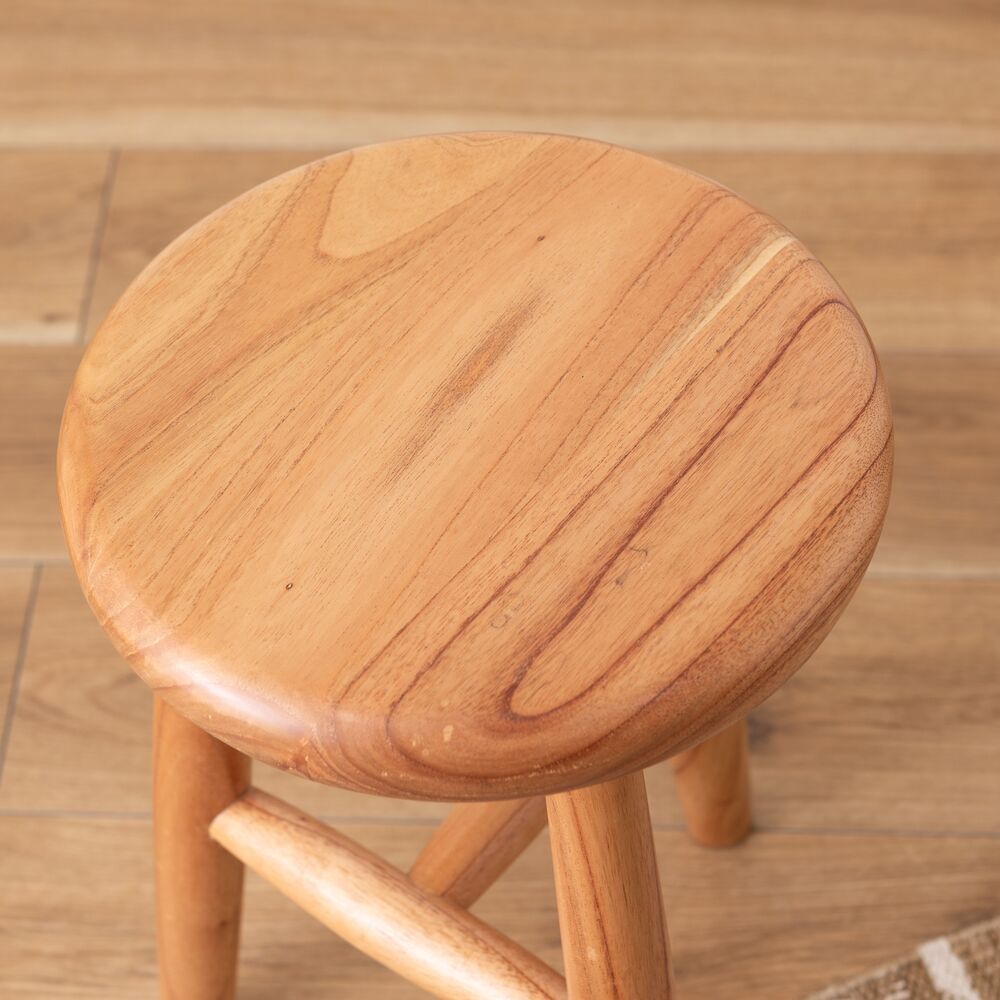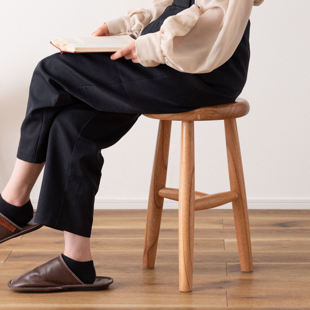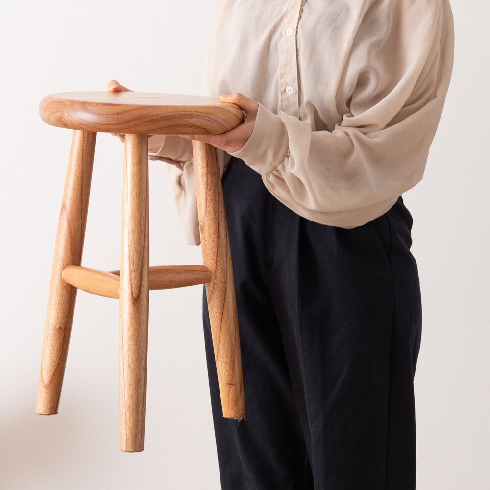 丸みを帯びたフォルムが愛らしい天然木スツール。