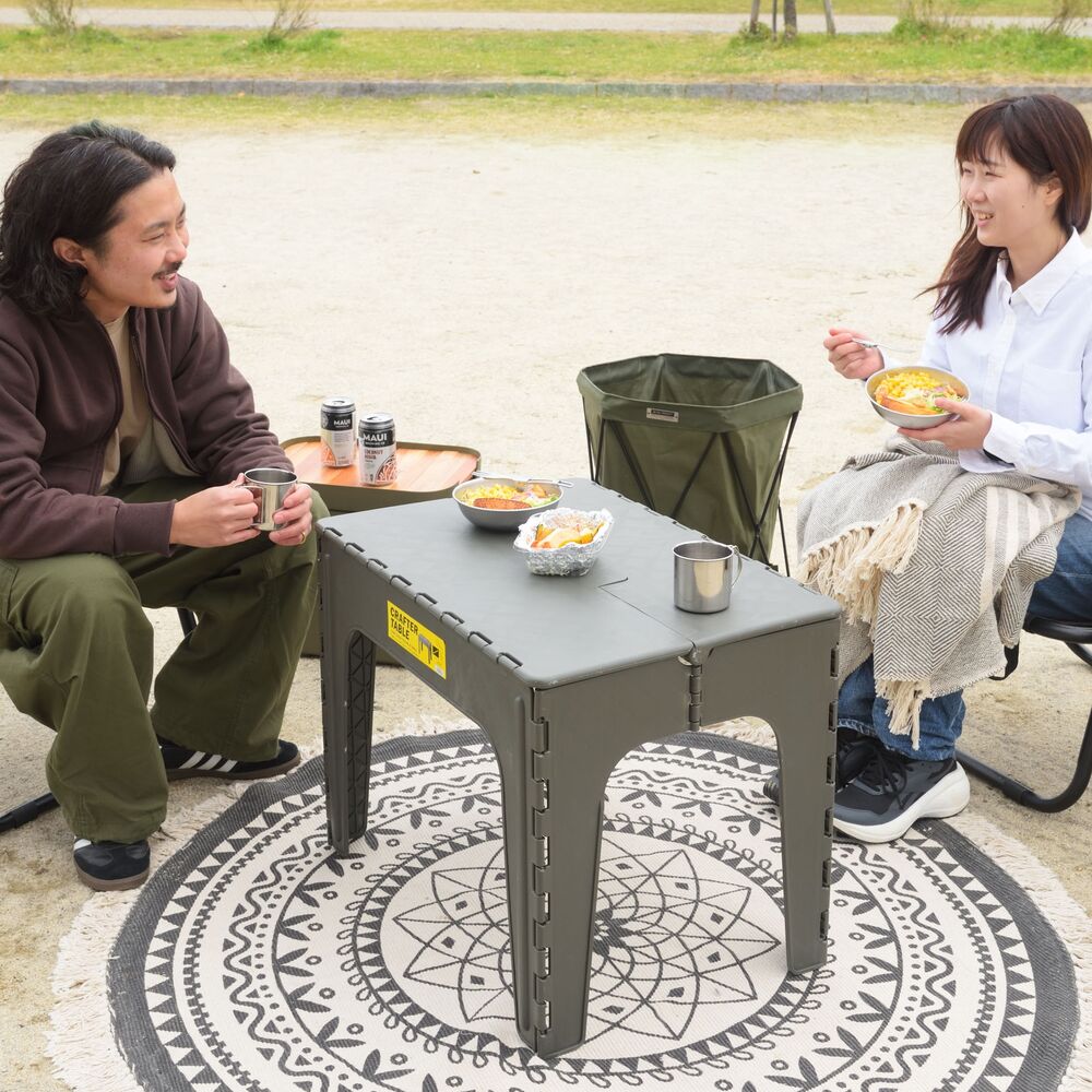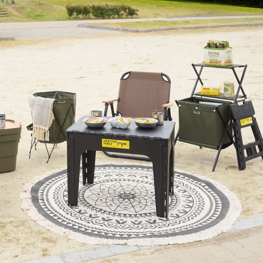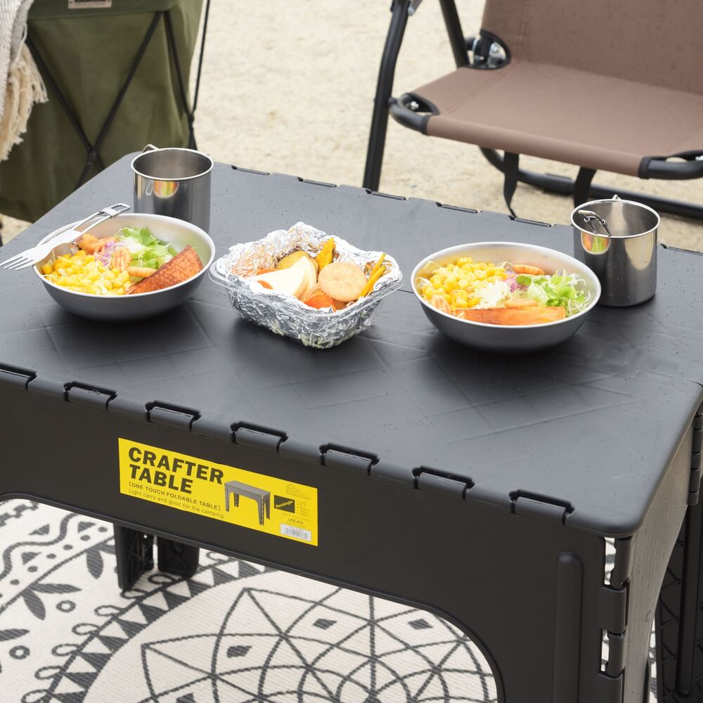 室内では作業台やサイドテーブルとして、屋外ではキャンプやBBQのサブテーブルに活躍します。