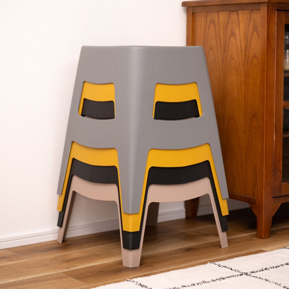 重ねて収納できるので、省スペースに片付けられ、来客時の予備椅子としても便利です。