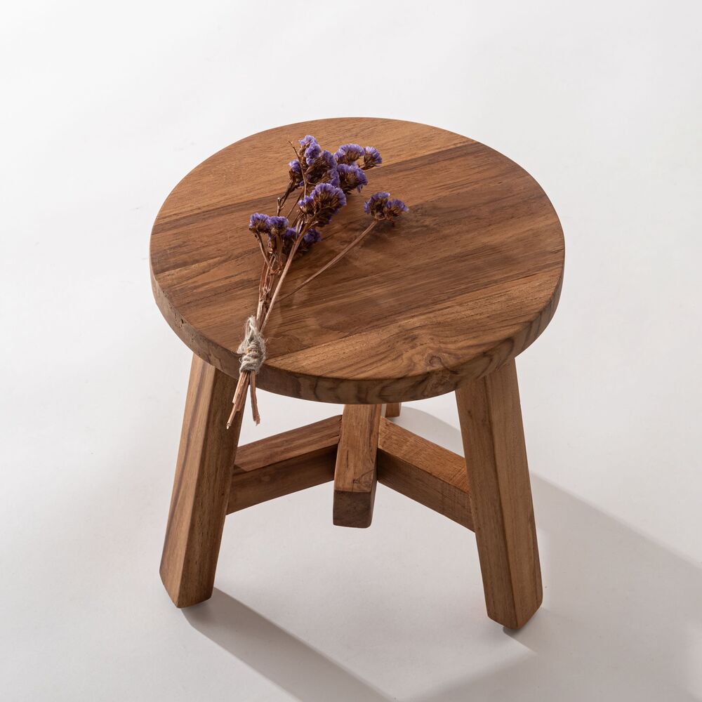 銘木チーク材を贅沢に使い、職人が心を込めて手作りしたミニスツールです。